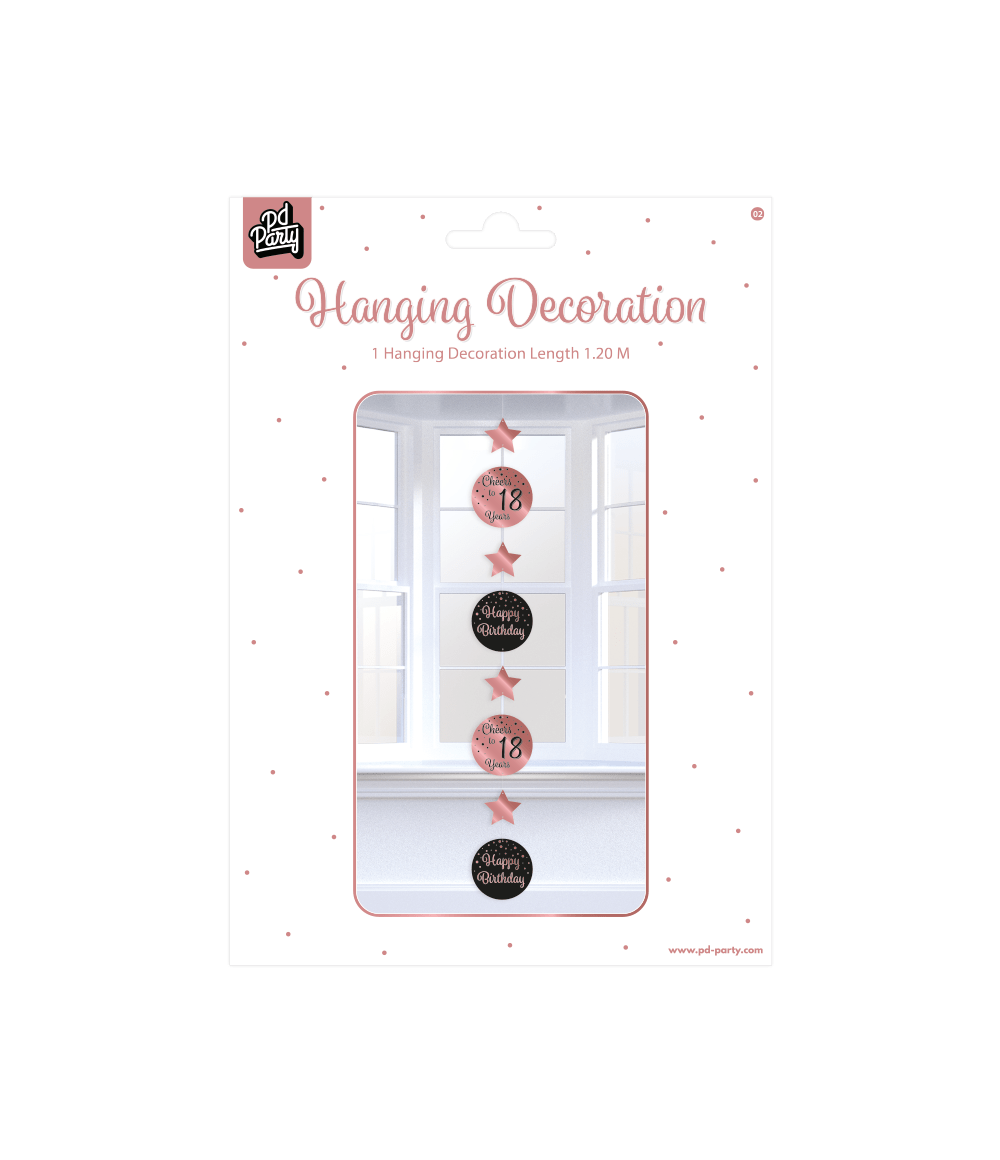 Dekoracja wisząca 18 lat różowo-czarna 20,5 cm