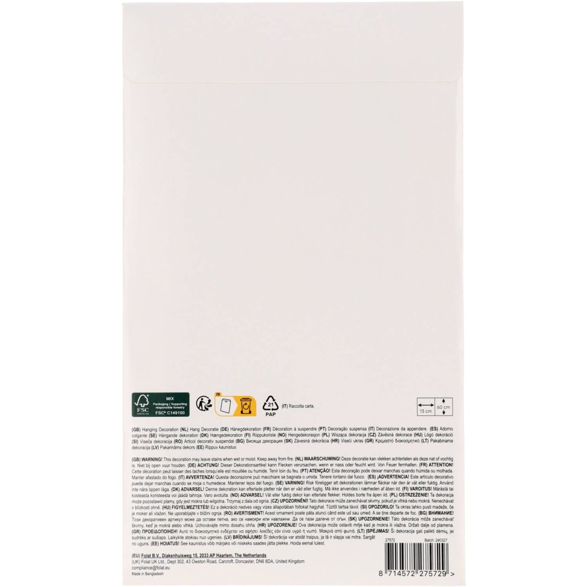 Dekoracja w kształcie piłki nożnej, która nie przestaje grać! Dekoracja wisząca - Fantastyczna piłka nożna - 6 sztuk. Zawartość: 6 sztuk dekoracji wiszącej. Do wykorzystania na przykład podczas następujących przyjęć/imprez okolicznościowych: Przyjęcie dla dzieci, Urodziny. 6 sztuk wiszących dekoracji z dwoma piłkarzami: jednym na ciemnoszarej i jednym na jasnoniebieskiej girlandzie, ciemnoniebieską dłonią z palcem w górze na pomarańczowo-czerwonej girlandzie, piłką nożną na zielonej girlandzie, błyszczącym złotym pucharem mistrza na pomarańczowo-czerwonej girlandzie i jasnoniebieskim kółkiem z napisem "HAVE A KICKING BIRTHDAY" na białej girlandzie. Dekoracje mają około 13 cm szerokości, 60 cm długości (wiszące) i można je łatwo zawiesić na pętli ze sznurka (+/- 7 cm długości). Nadruk po obu stronach. Nadaje się na urodziny i przyjęcia dla dzieci przez cały rok. Ten artykuł jest wykonany z papieru.