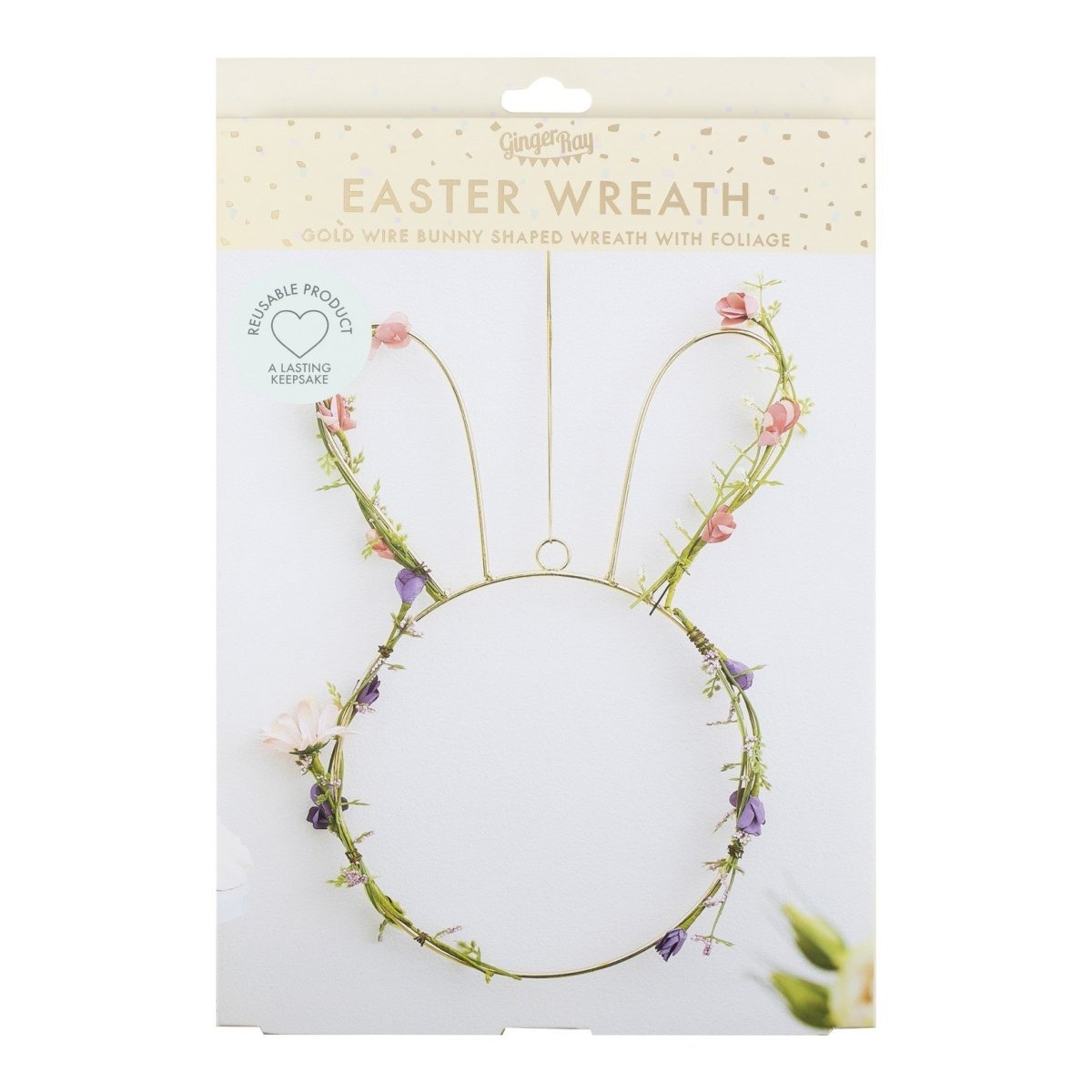 Ten wieniec w kształcie króliczka to najsłodsza dekoracja wielkanocna, ze złotymi drucianymi detalami, pięknymi liśćmi i pastelowymi kwiatami, doda odrobinę wiosny do Twojego domu.