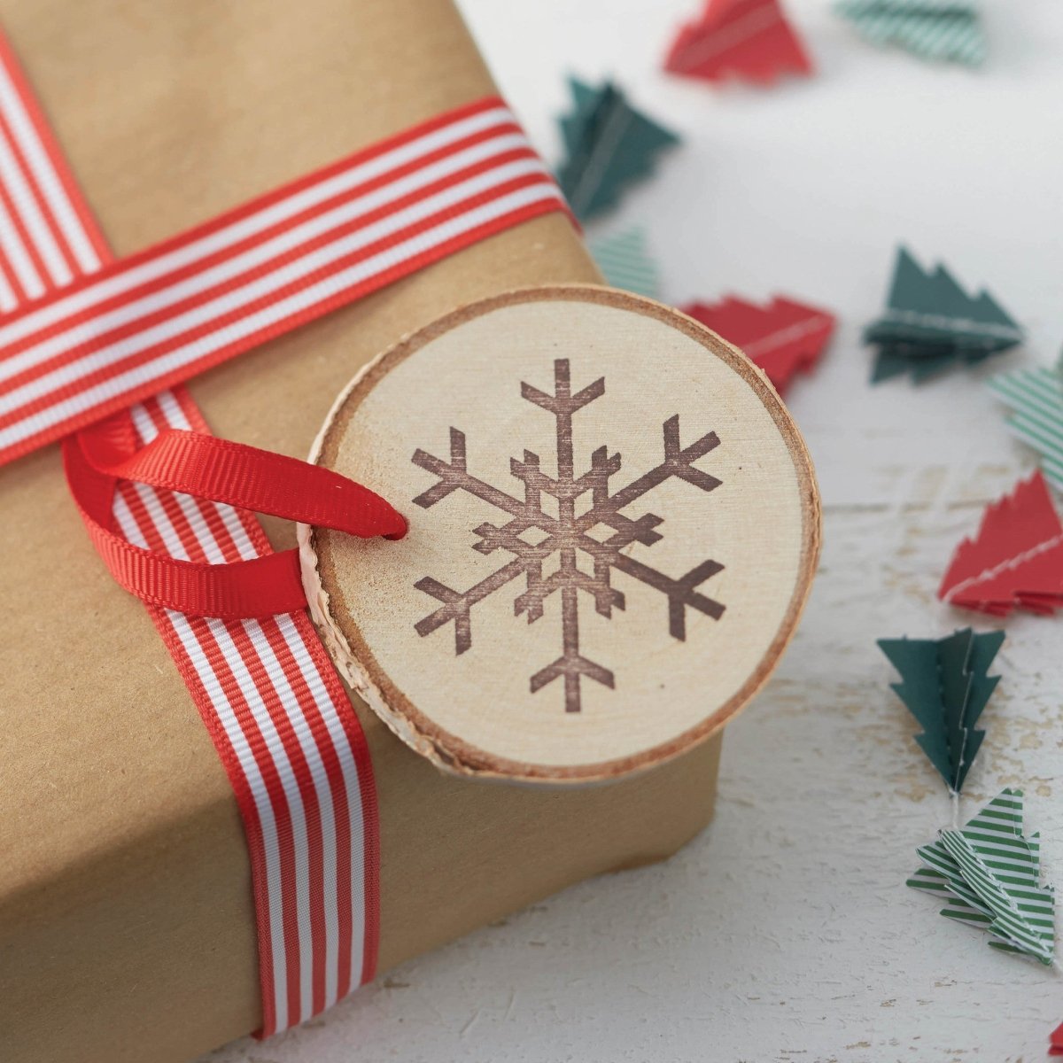 Każde opakowanie zawiera 6 wiszących drewnianych ozdób z nadrukiem płatka śniegu po obu stronach dekoracji. Każda drewniana zawieszka ma również czerwoną wstążkę zawiązaną na supeł, co ułatwia jej przymocowanie. Zwróć uwagę, że każdy brązowy nadruk płatka śniegu może różnić się od przedstawionego zdjęcia produktu.