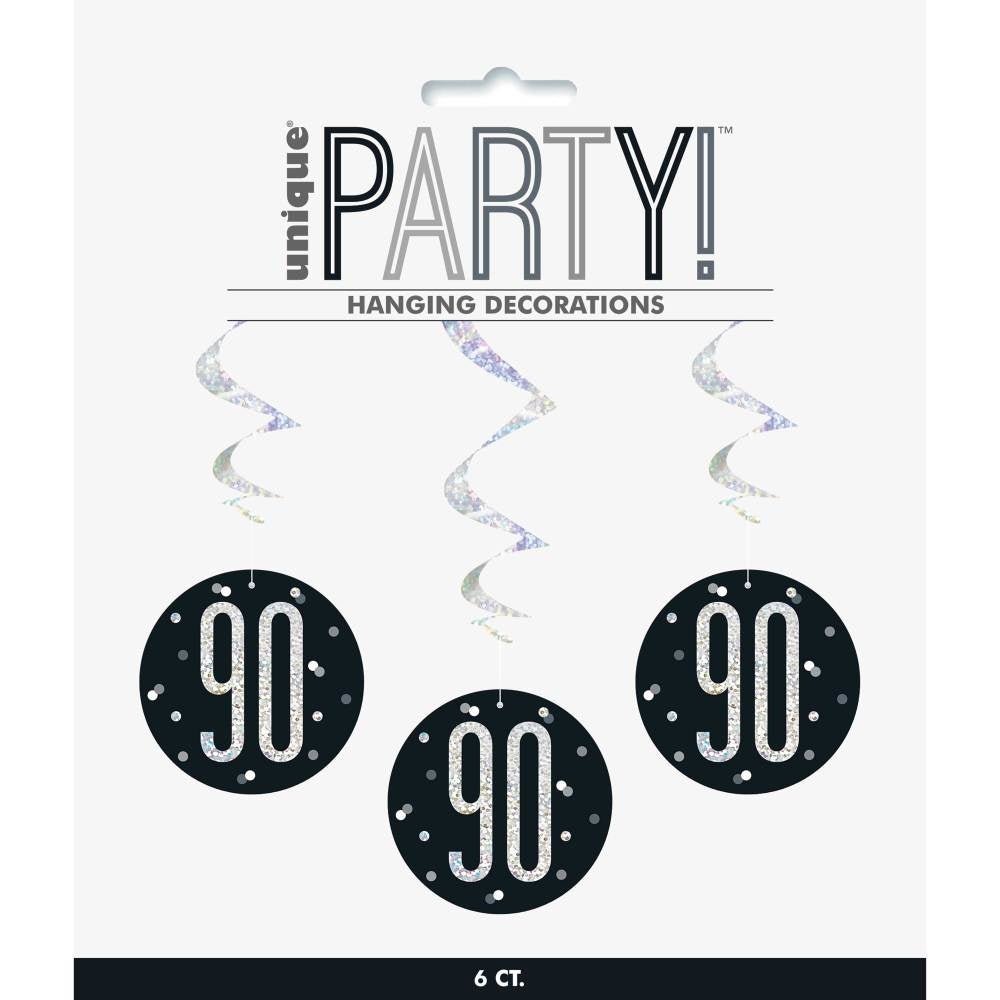 Dekoracja wisząca 90 lat czarna 81 cm 6 szt