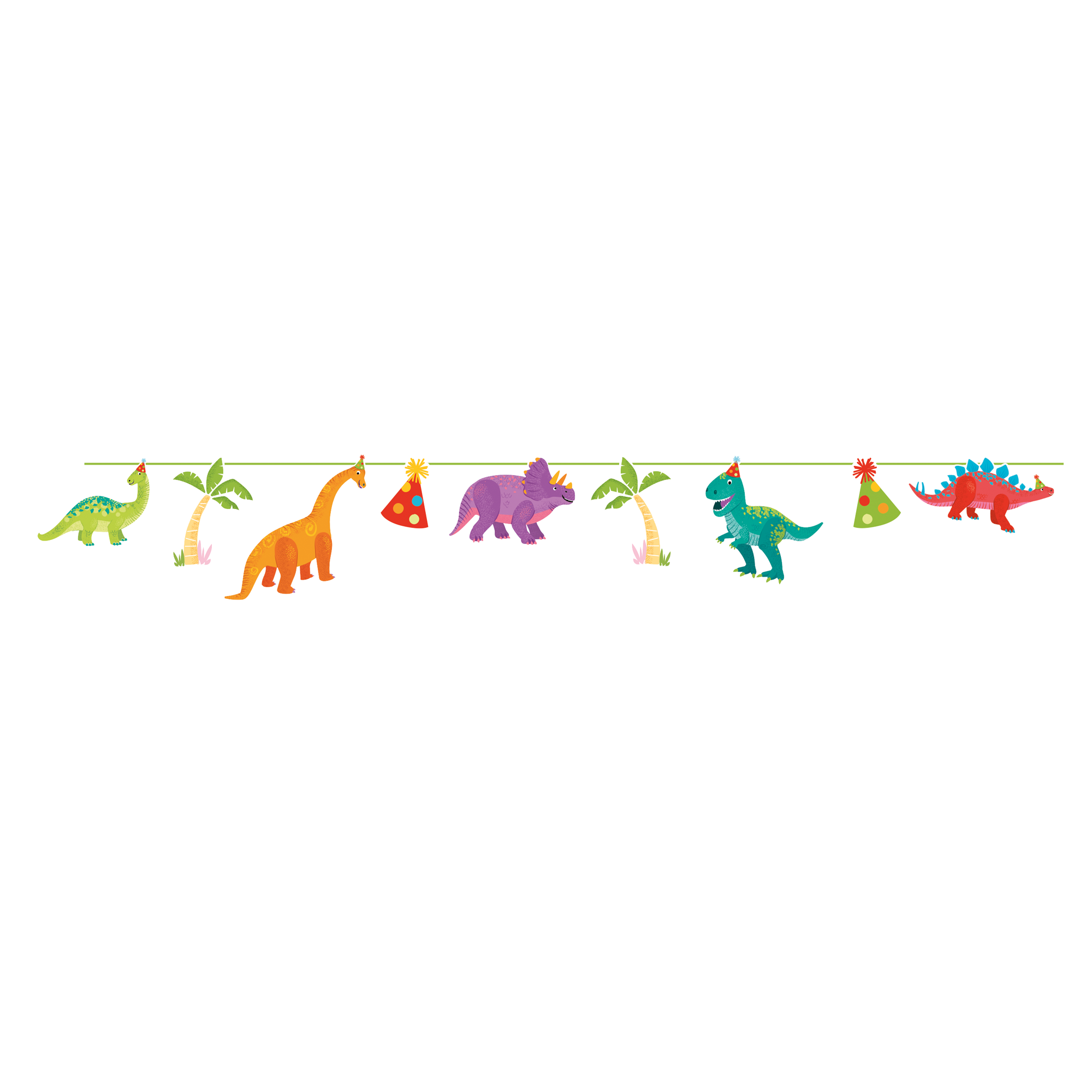 Ożyw urodziny lub imprezę tematyczną z dinozaurami dzięki tej girlandzie dinozaurów! Wesołe kolory i fajne symbole dinozaurów natychmiast zmienią każde pomieszczenie w imprezowe miejsce.