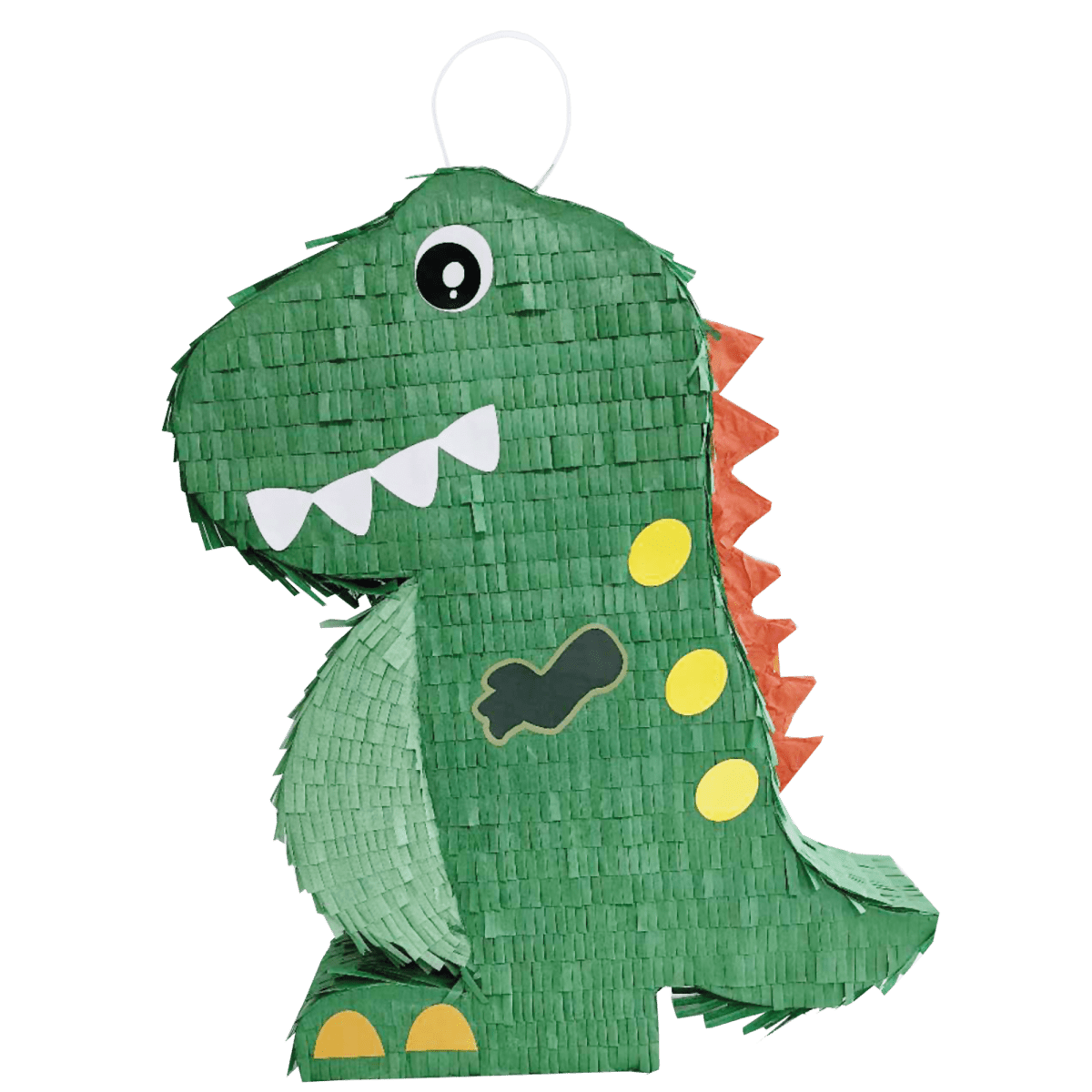 Zapewnij dodatkowe emocje i zabawę na każdym przyjęciu dla dzieci dzięki tej fajnej pinacie z dinozaurem. Wypełnij ją słodyczami lub drobnymi niespodziankami i pozwól dzieciom spróbować rozbić pinatę. Wesoły wzór z zielonego papieru sprawia, że jest to nie tylko świetna zabawa, ale także przyciąga wzrok w dekoracjach imprezowych.