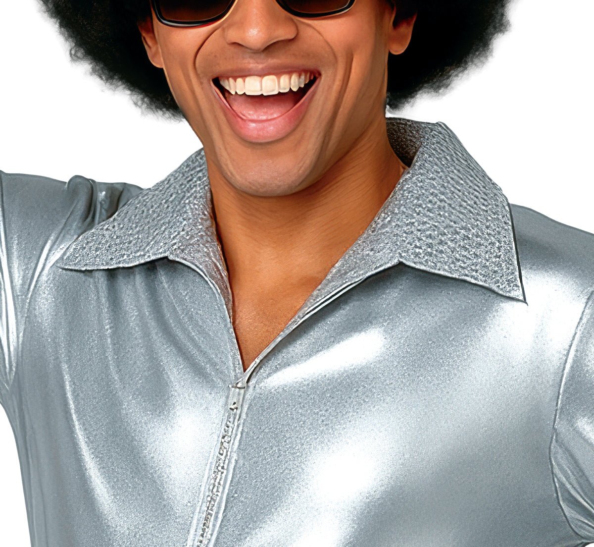 Cofnij się do lat disco dzięki temu przyciągającemu wzrok srebrnemu kombinezonowi dyskotekowemu dla mężczyzn. Błyszczący wygląd sprawia, że ten kombinezon jest idealny na imprezy tematyczne, karnawał lub foul party.