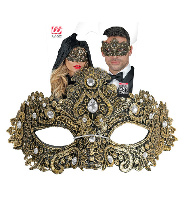 Nadaj każdemu strojowi elegancki i tajemniczy wygląd dzięki tej teatralnej masce na oczy w złotym kolorze, idealnej na bale maskowe, imprezy tematyczne i przebierane imprezy.