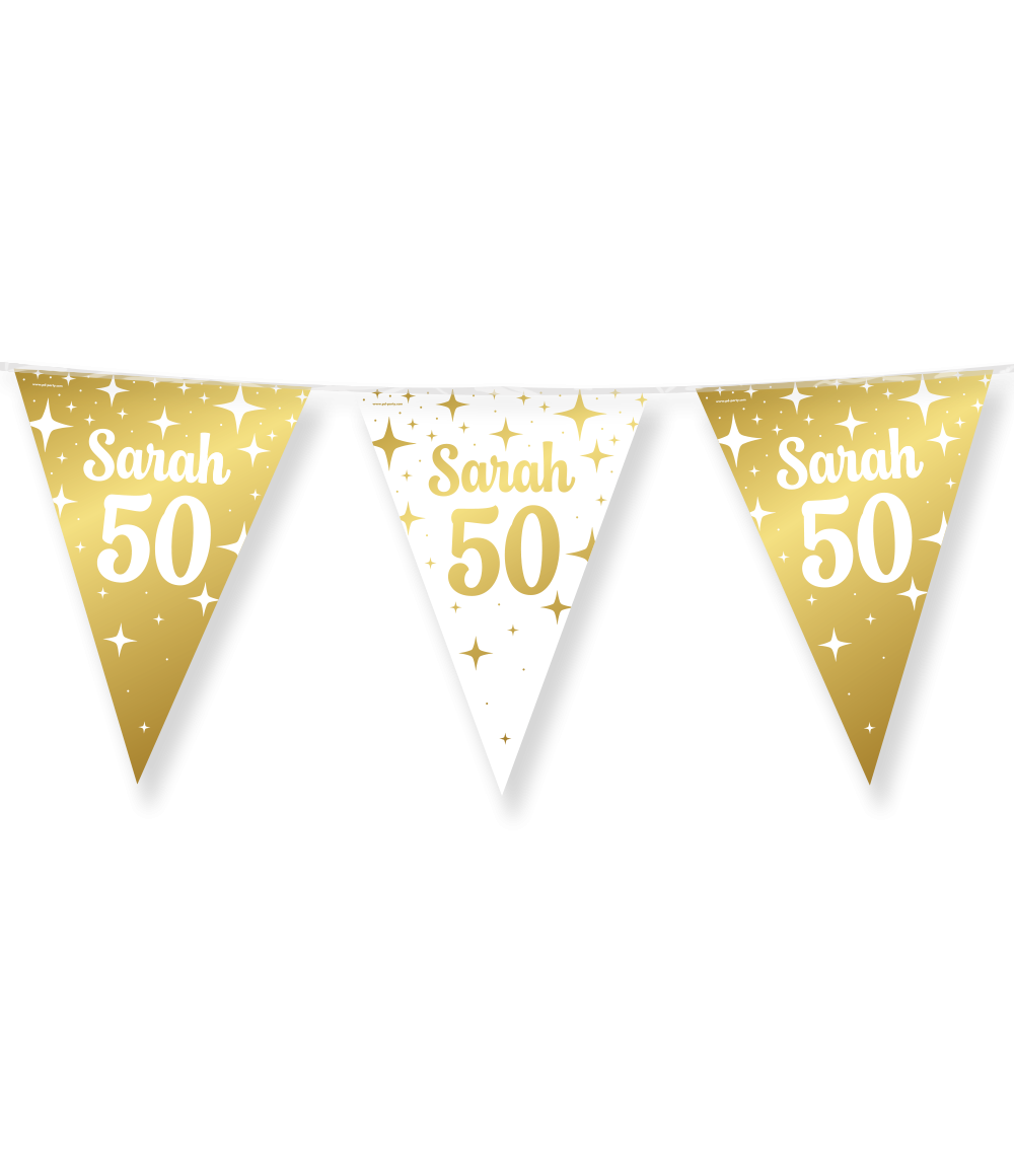 Foliowe flagi imprezowe Fancy Party Flags - Sarah 50 można idealnie łączyć z naszymi pasującymi balonami, a także z innymi artykułami imprezowymi z naszej szerokiej gamy, dzięki czemu możesz bez wysiłku stworzyć świąteczną i stylową atmosferę.