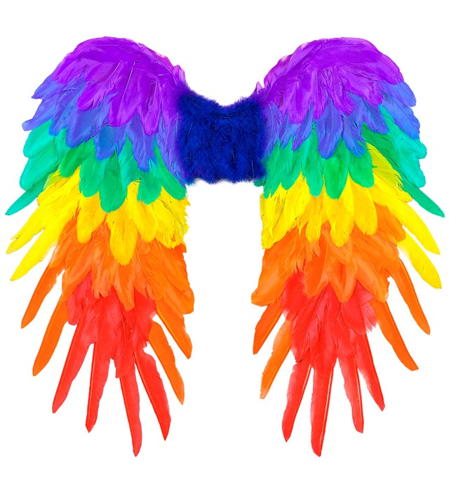Pozwól dzieciom lub dorosłym błyszczeć jak kolorowy tęczowy ptak dzięki tym składanym skrzydłom z piór, idealnym na imprezy kostiumowe, imprezy tematyczne lub pomysłowe odgrywanie ról.