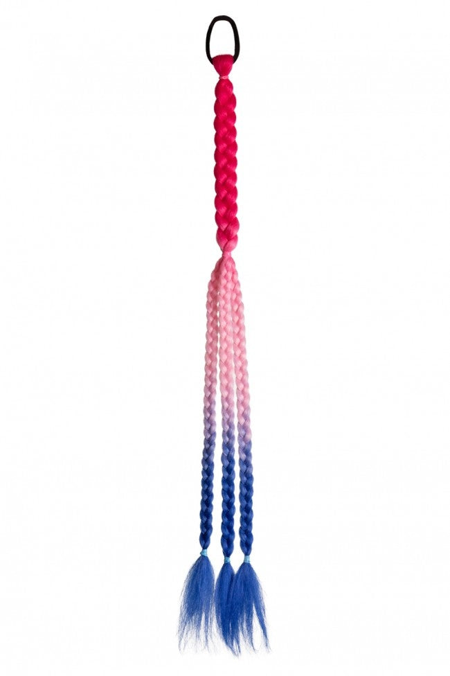 To przedłużenie składa się z 3 pasm wiązanych włosów z gumką i warkoczem z pióropuszem na końcu.