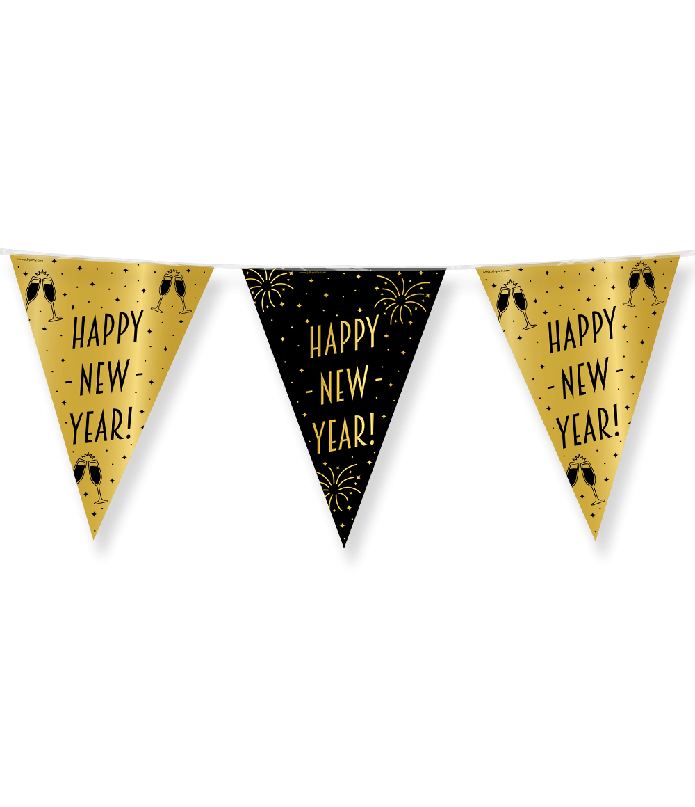 Lina flagowa Szczęśliwego Nowego Roku Złoto Czarny 10m