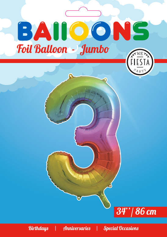 Zawartość opakowania:Balon foliowy Figurka 3 Rainbow XL 86cm pusty