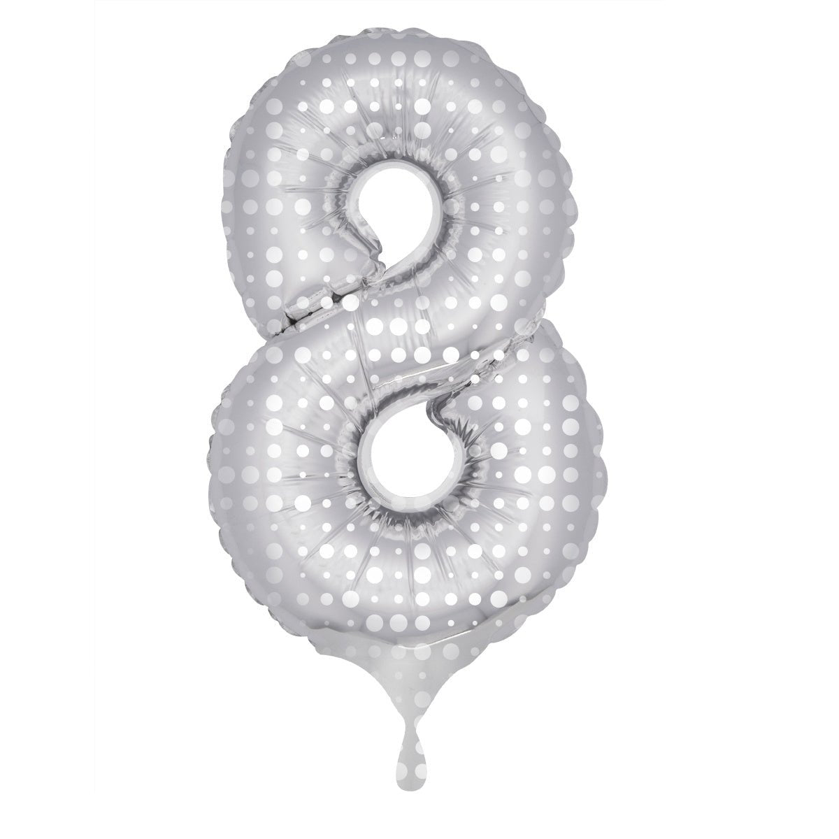 Balon foliowy cyfra 8 srebrne kropki XL 86 cm pusty