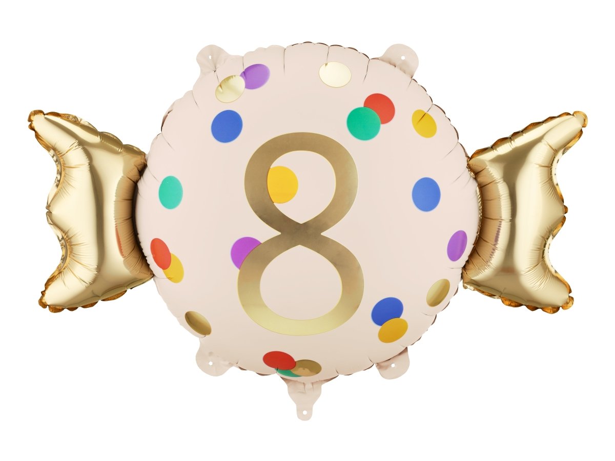 Uzupełnij swoją dekorację imprezową tym stylowym 8" balonem foliowym Candy 8" w kolorze beżowym i złotym. Idealny na urodziny, rocznice lub inne uroczystości, w których cyfra 8 odgrywa kluczową rolę.