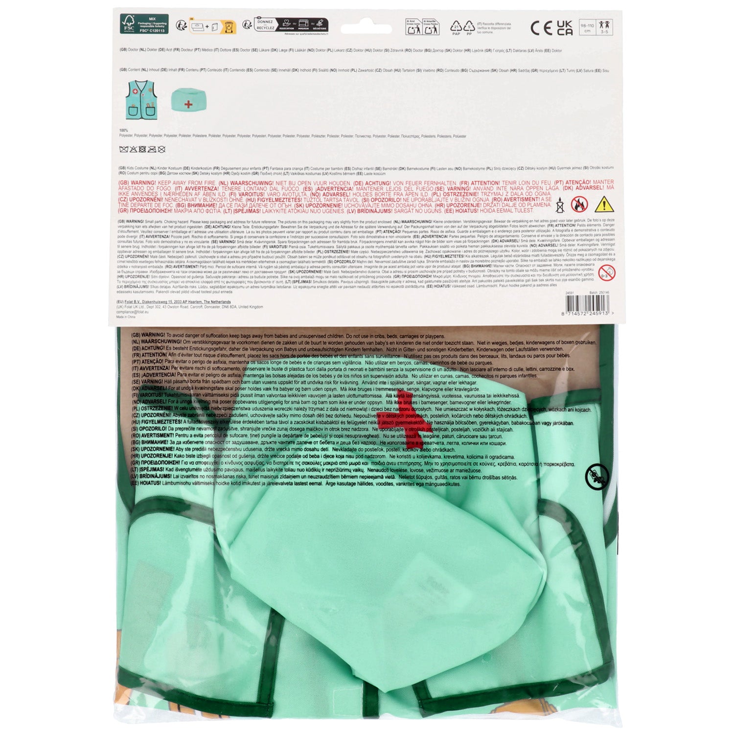 Lekarz w pokoju! Z tym Zestawem do przebierania doktora każde dziecko będzie gotowe do badania i pomagania pacjentom. Idealny na przyjęcia dla dzieci, bale przebierańców i karnawał. Zestaw zawiera jasnozieloną kamizelkę lekarską i pasujący do niej czepek chirurgiczny, oba z rozpoznawalnymi detalami medycznymi.