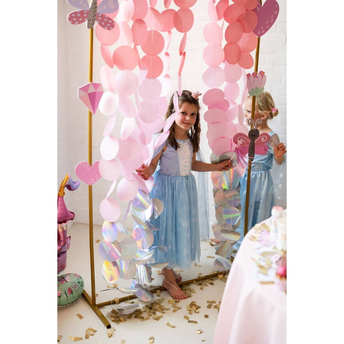 Ta mieniąca się jasnoniebieska sukienka księżniczki sprawi, że każde dziecko będzie błyszczeć jak prawdziwa księżniczka z płatkami śniegu. Dostępna w dwóch rozmiarach: 98-110 cm (3-5 lat) i 116-128 cm (6-8 lat).