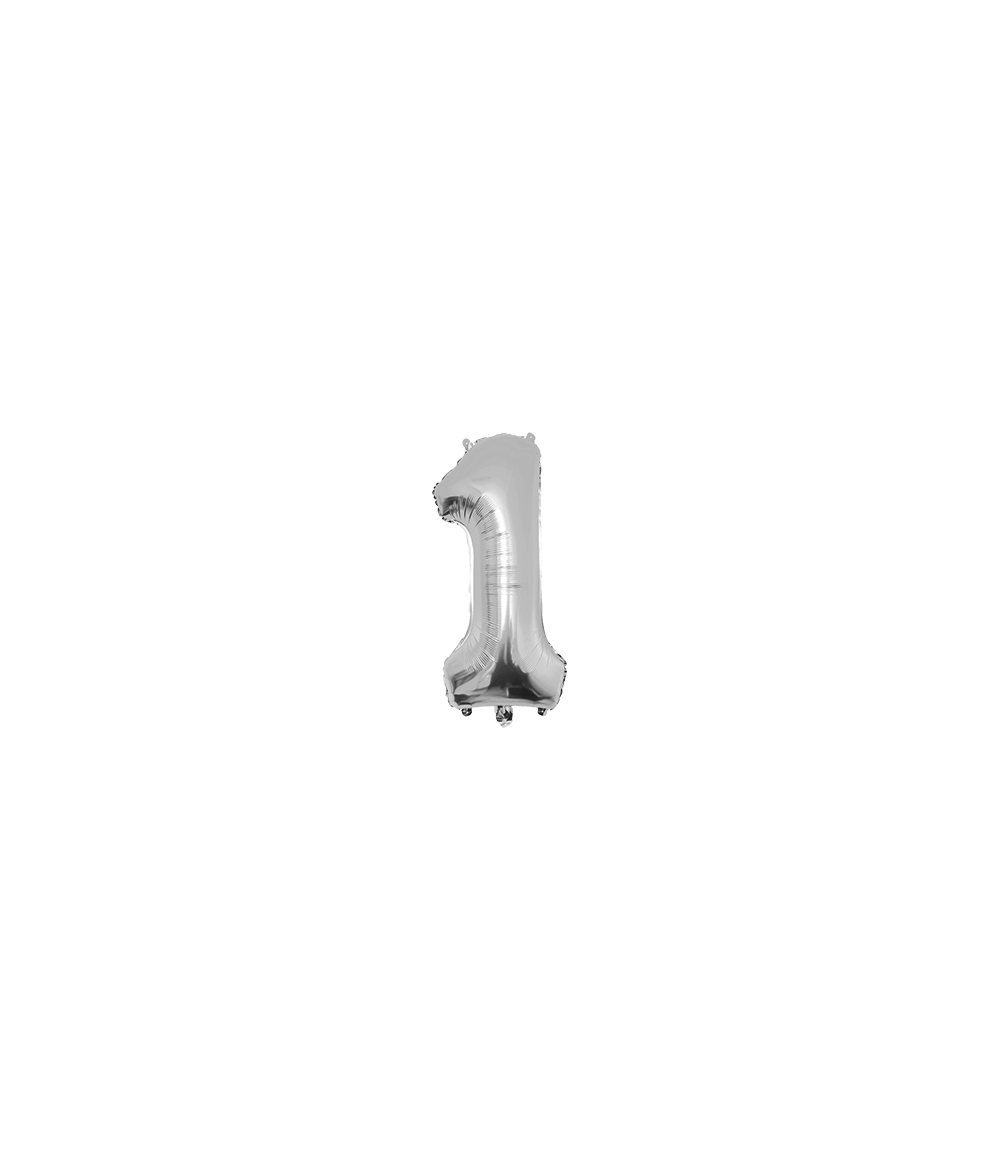 Balon foliowy 40 cm, cyfra 1, srebrny