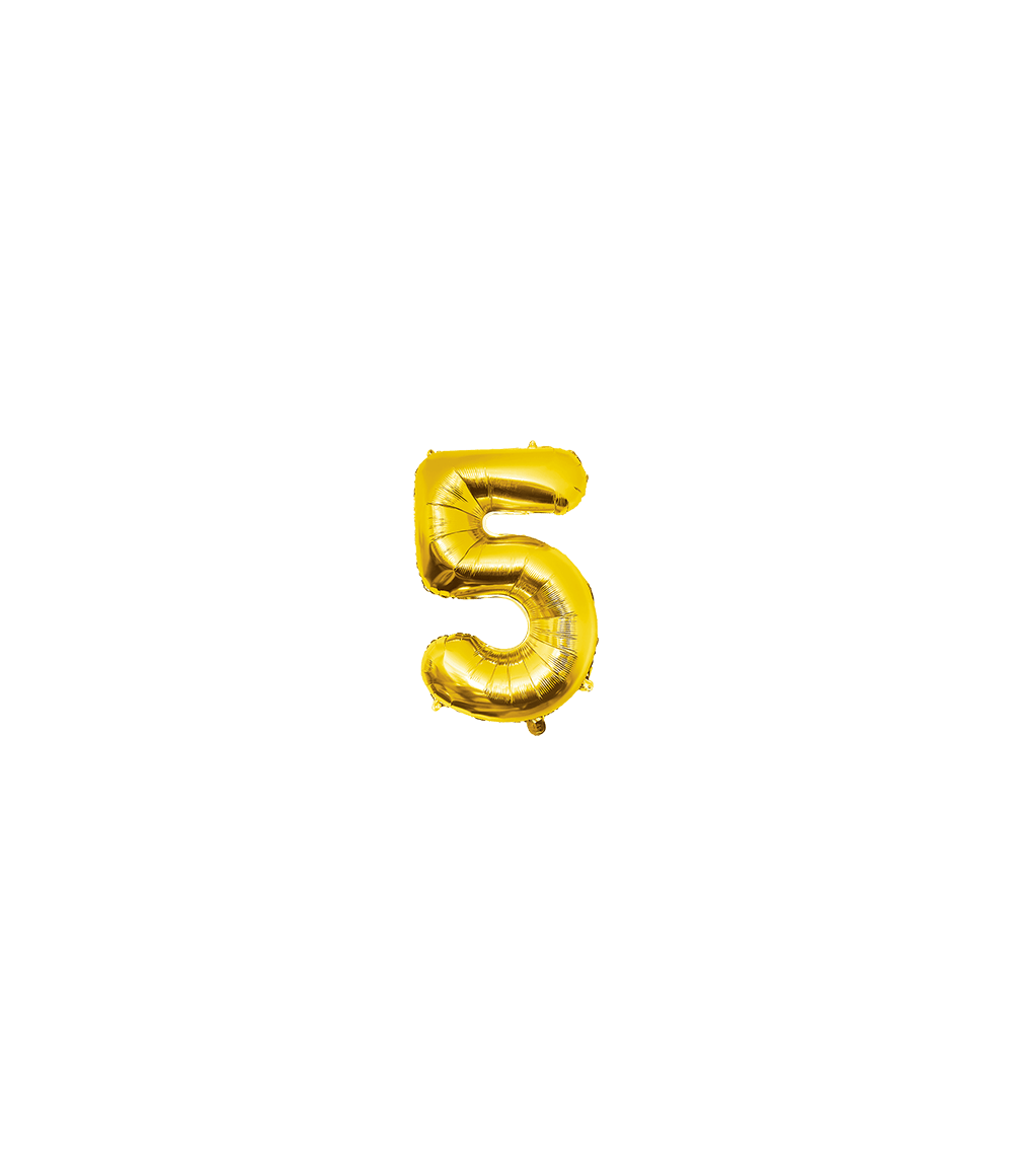 Balon foliowy 40 cm, cyfra 5 złoty