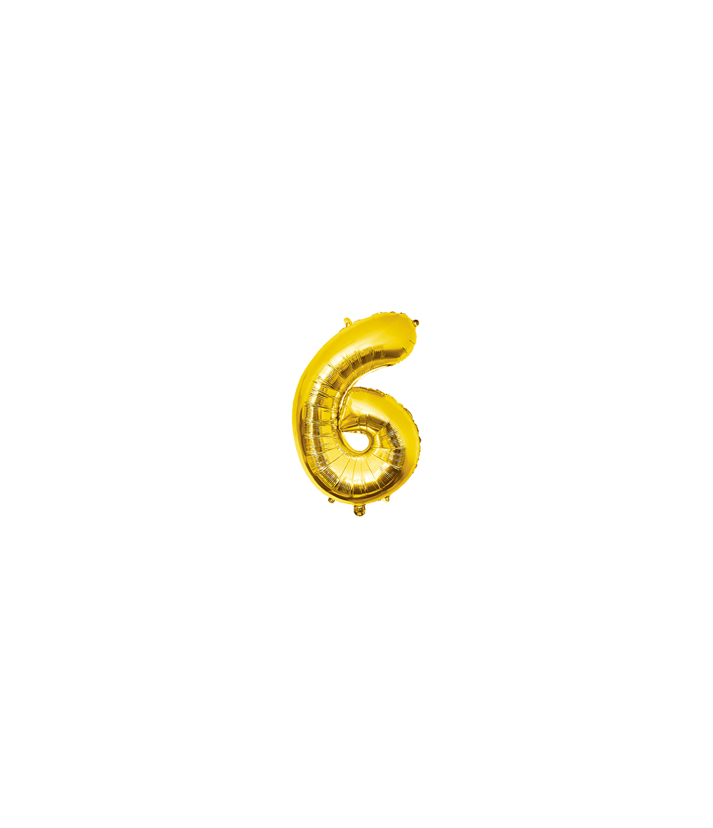 Balon foliowy 40 cm, cyfra 6, złoty