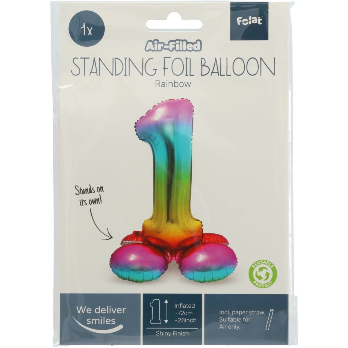 Balon foliowy Figurka 1 Tęcza ze stojakiem 72 cm