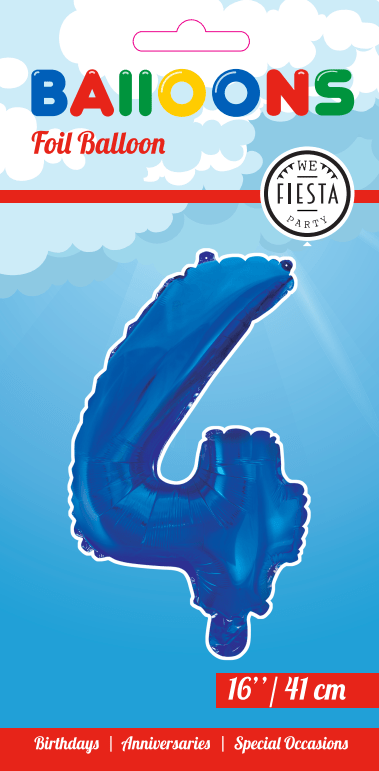 Balon foliowy Figurka 4 Niebieski 41 cm ze słomką
