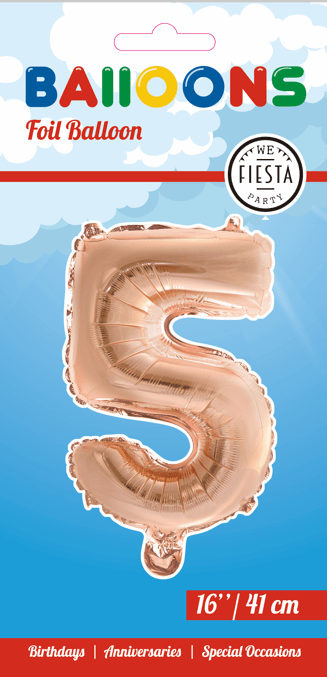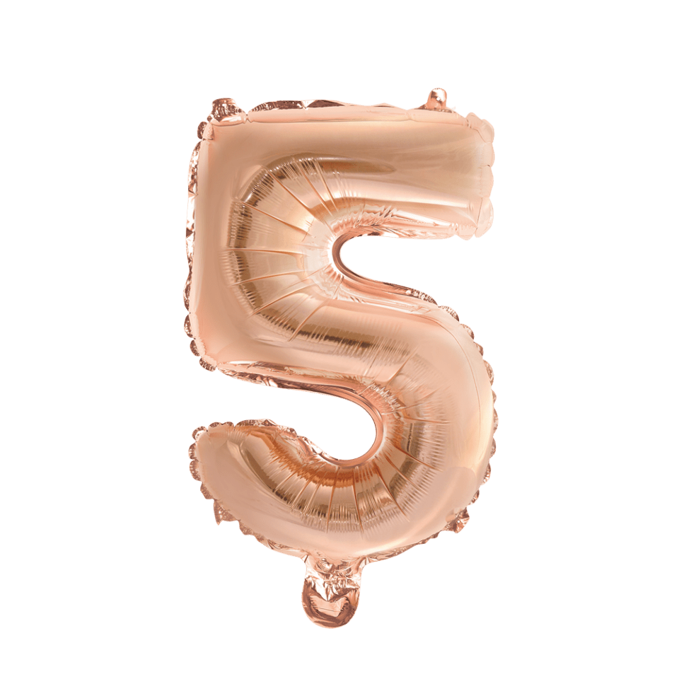 Balon foliowy Figurka 5 różowe złoto 41 cm ze słomką