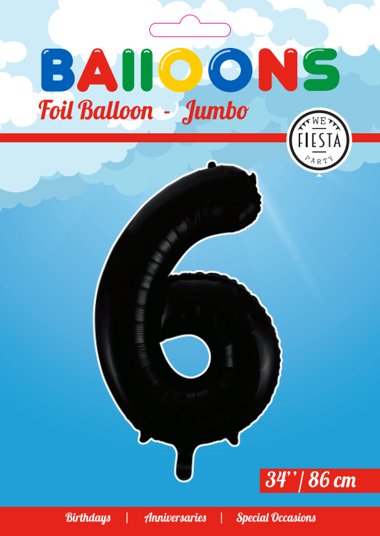 Balon foliowy Figurka 6 Czarny XL 86cm pusty