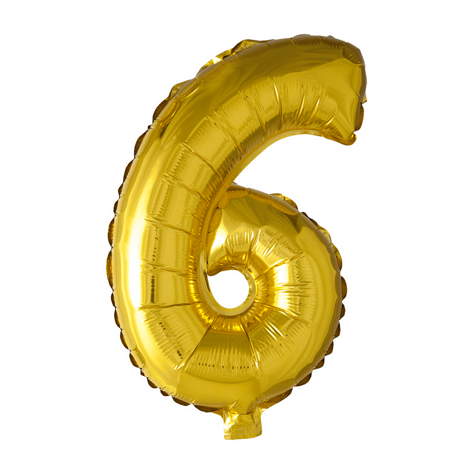 Zawartość opakowania: Balon foliowy Figurka 6 Gold 41 cm ze słomką