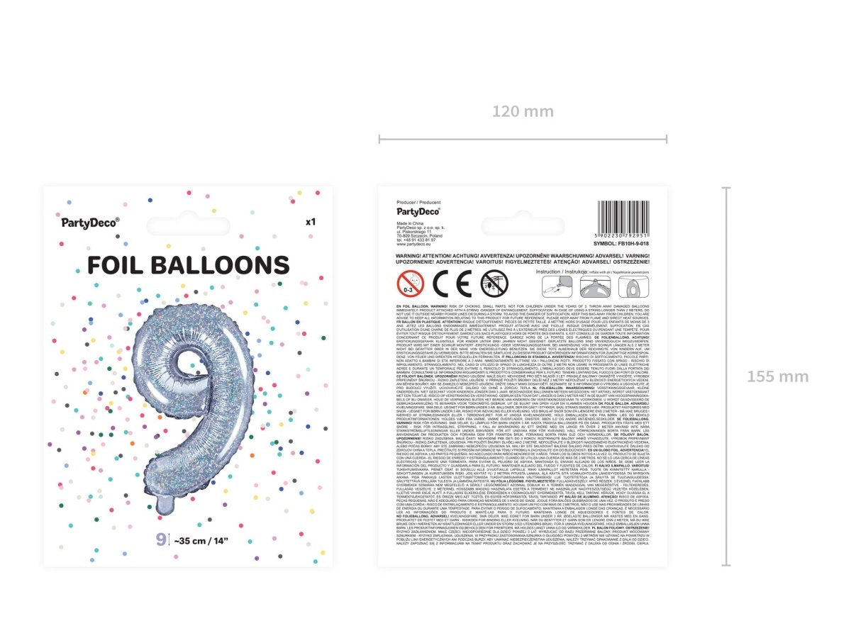 Balon foliowy Figurka 9 Holograficzny 35cm