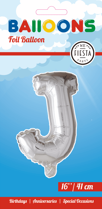 Balon foliowy litera J srebrny 41 cm ze słomką