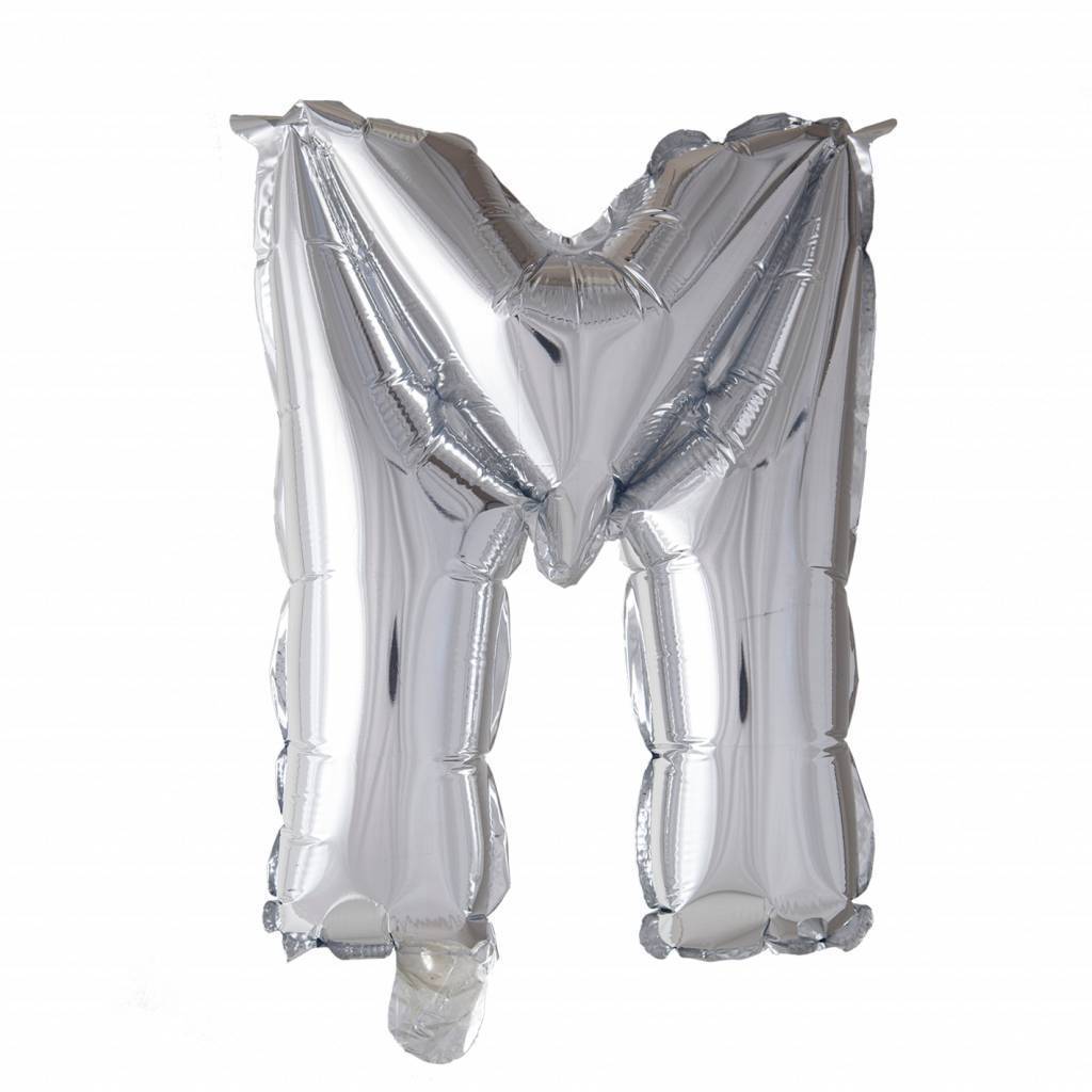 Balon foliowy litera M srebrny 41 cm ze słomką