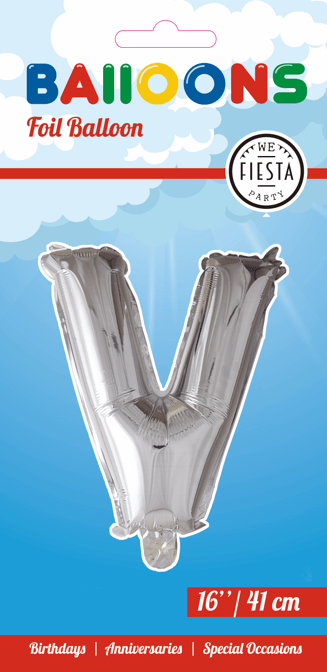 Zawartość opakowania: Balon foliowy litera V srebrny 41 cm ze słomką
