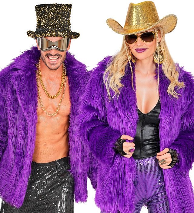 Ten pluszowy futrzany płaszcz w kolorze fioletowym to stylowy i przyciągający wzrok dodatek do odświętnej stylizacji. Idealny na karnawał, imprezy tematyczne, przyjęcia w stylu lat 80/90 lub złe przyjęcie.