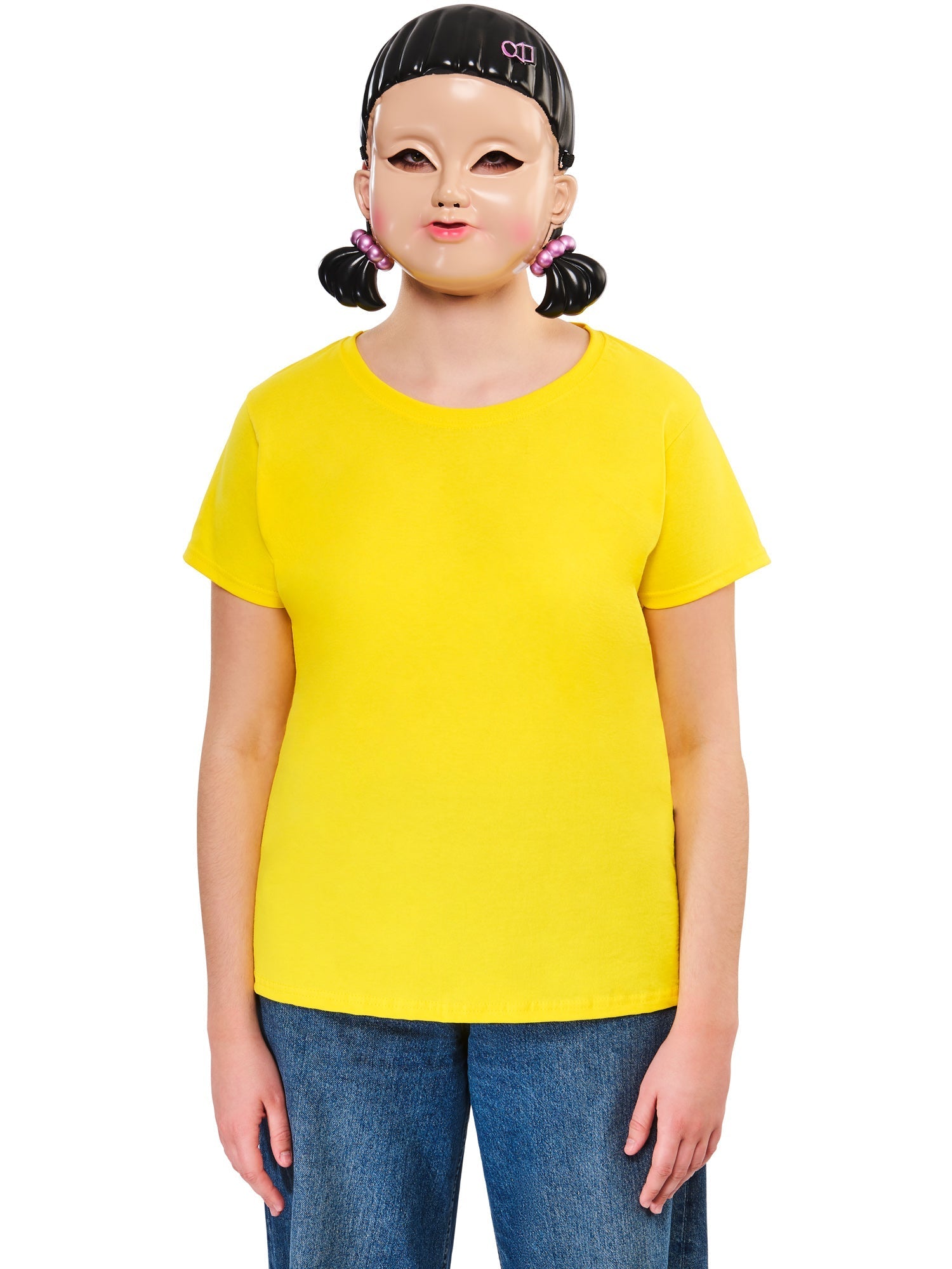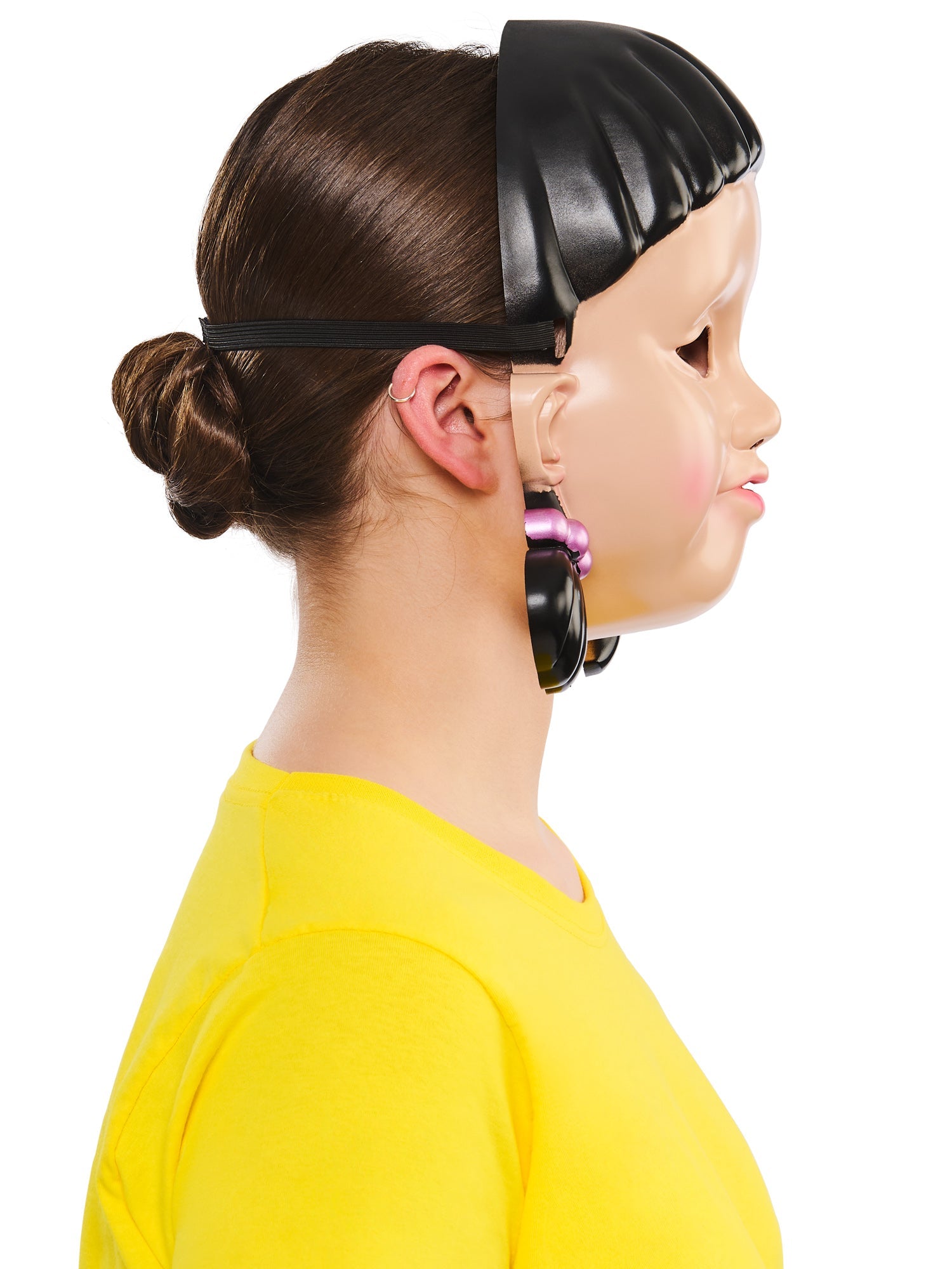 Zmień się w przerażającą i tajemniczą postać kultowej Girl Doll z Squid Game dzięki tej starannie ukształtowanej półmasce. Idealna do połączenia z kostiumem, aby uzyskać kompletny wygląd na Halloween.