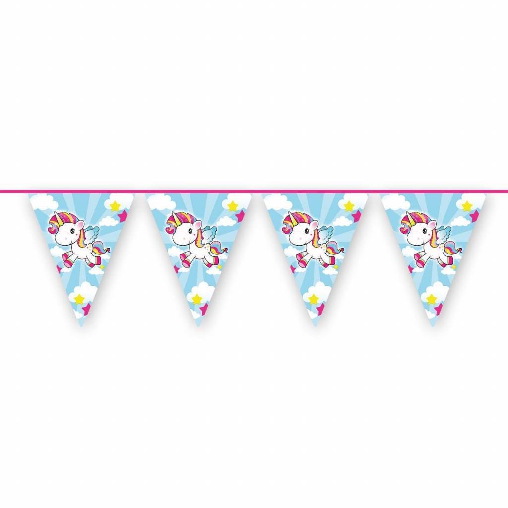 Linka flagowa Unicorn - 10 metrów. Zawartość: 1 linka flagowa. Kolor: wielokolorowy. Motyw produktu: Jednorożec. Do wykorzystania na przykład podczas następujących przyjęć/imprez: przyjęcie dla dzieci. Ta girlanda ma 10 metrów długości i 15 flag o długości 27 cm. Artykuł jest wykonany z tworzywa sztucznego