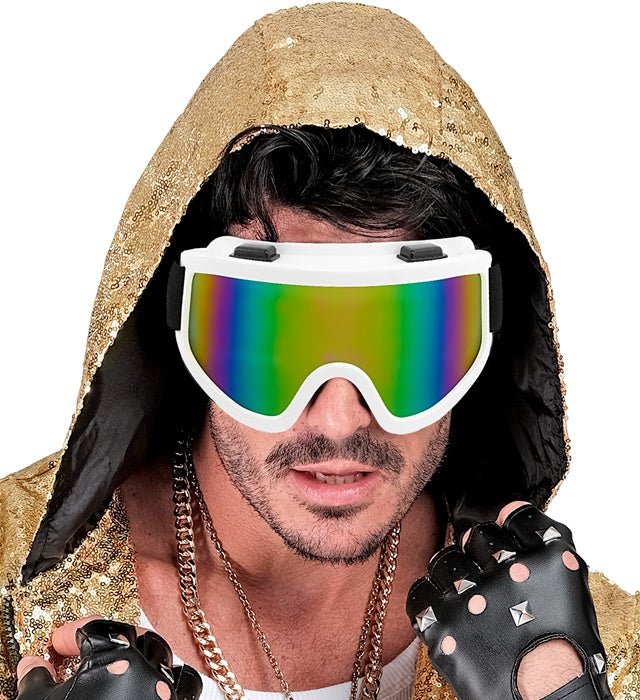 Uzupełnij swój strój tymi okularami narciarskimi z lat 80-tych w kolorze białym, które przyciągają wzrok na imprezach retro i tematycznych.