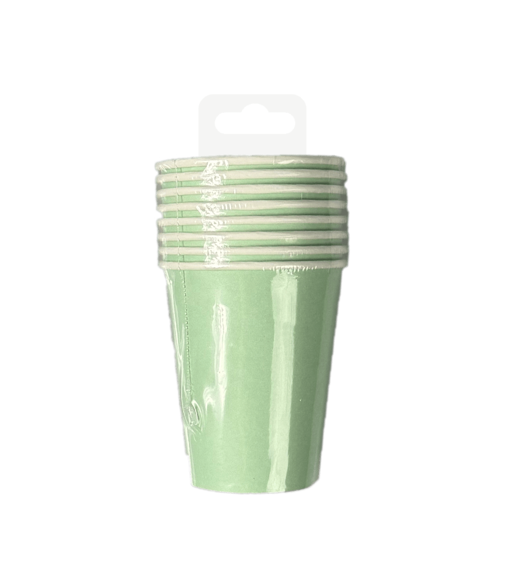 Kubeczki w kolorze pastelowej zieleni to idealne elementy dekoracyjne na przyjęcie, którego motywem przewodnim jest kolor pastelowej zieleni. Kubki mają wymiary 8,5 x 7 cm, są pakowane po 8 sztuk i idealnie pasują do innych pastelowych zielonych elementów, takich jak konfetti, serwetki, talerze, obrusy, pudełka na przekąski i flagi. Zaprezentuj te elementy razem, aby klient od razu wiedział, z czego składa się ta kolekcja. Kubki są wykonane z papieru, dzięki czemu są przyjazne dla środowiska