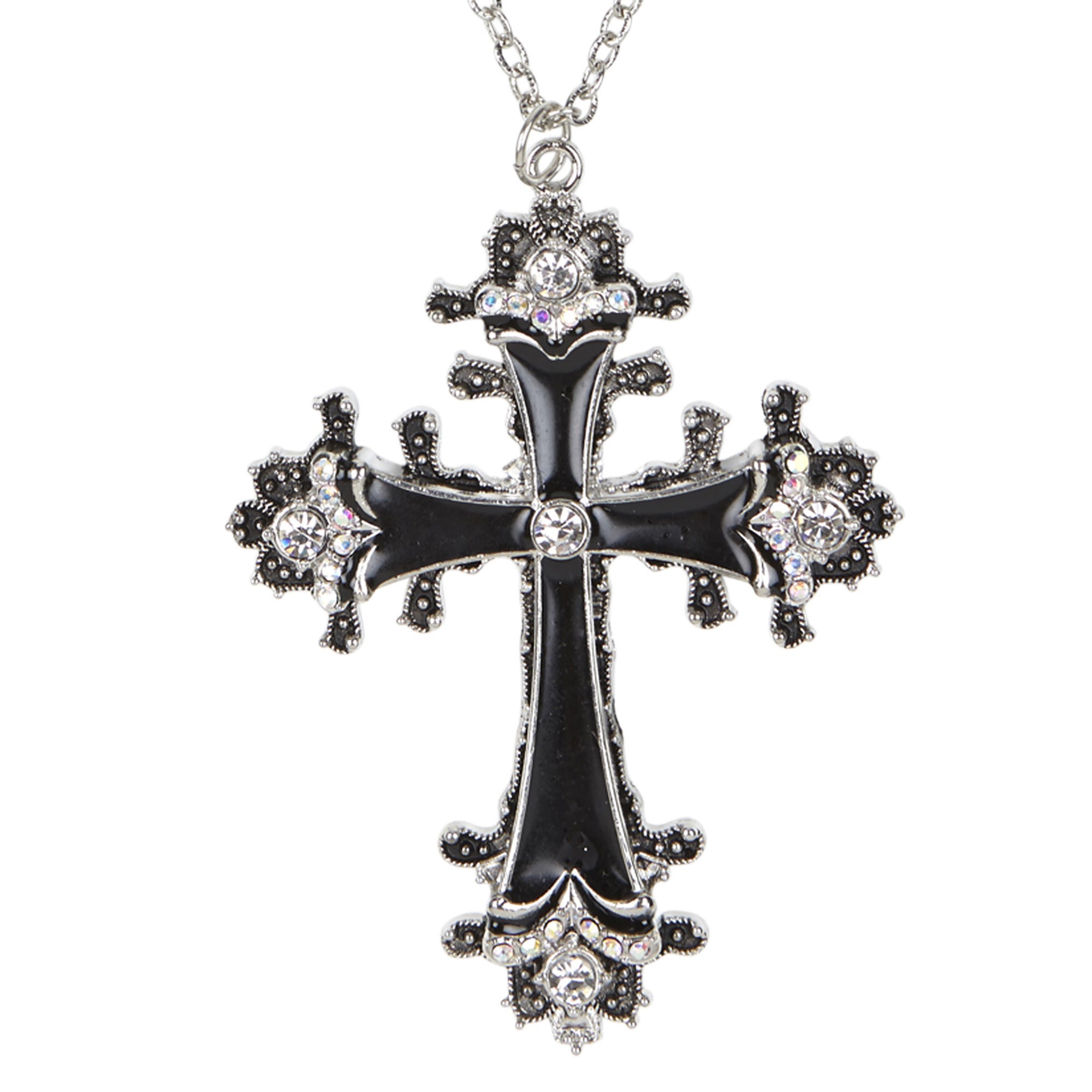 Naszyjnik na Halloween Czarny srebrny krzyż