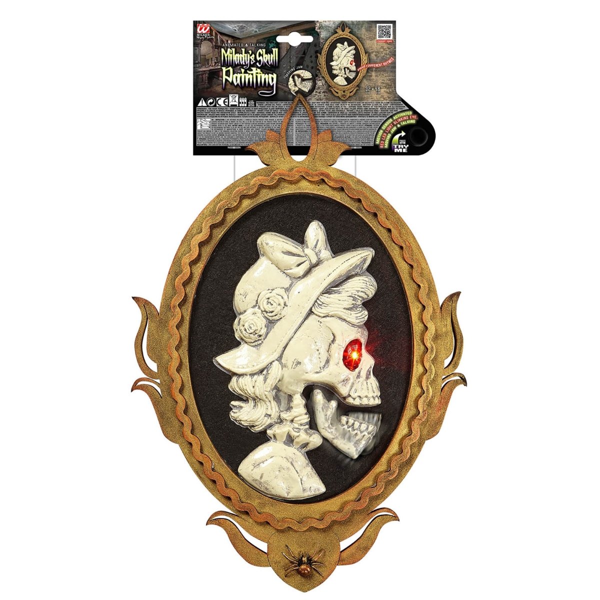 Znak na drzwi Halloween Szkieletowa Dama ze światłem i dźwiękiem 48 cm