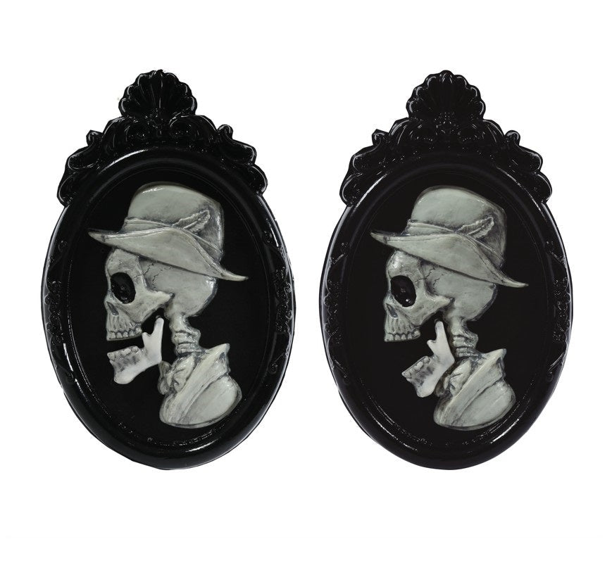 Nadaj swojemu wejściu na Halloween przerażający wygląd dzięki temu 45-centymetrowemu szyldowi drzwiowemu Skull Portrait. Płaskorzeźba w kształcie popiersia z czaszką, wyposażona w światła LED w oczach, ruchomą szczękę i szczękające zęby, natychmiast tworzy przerażające i przyciągające wzrok wejście.