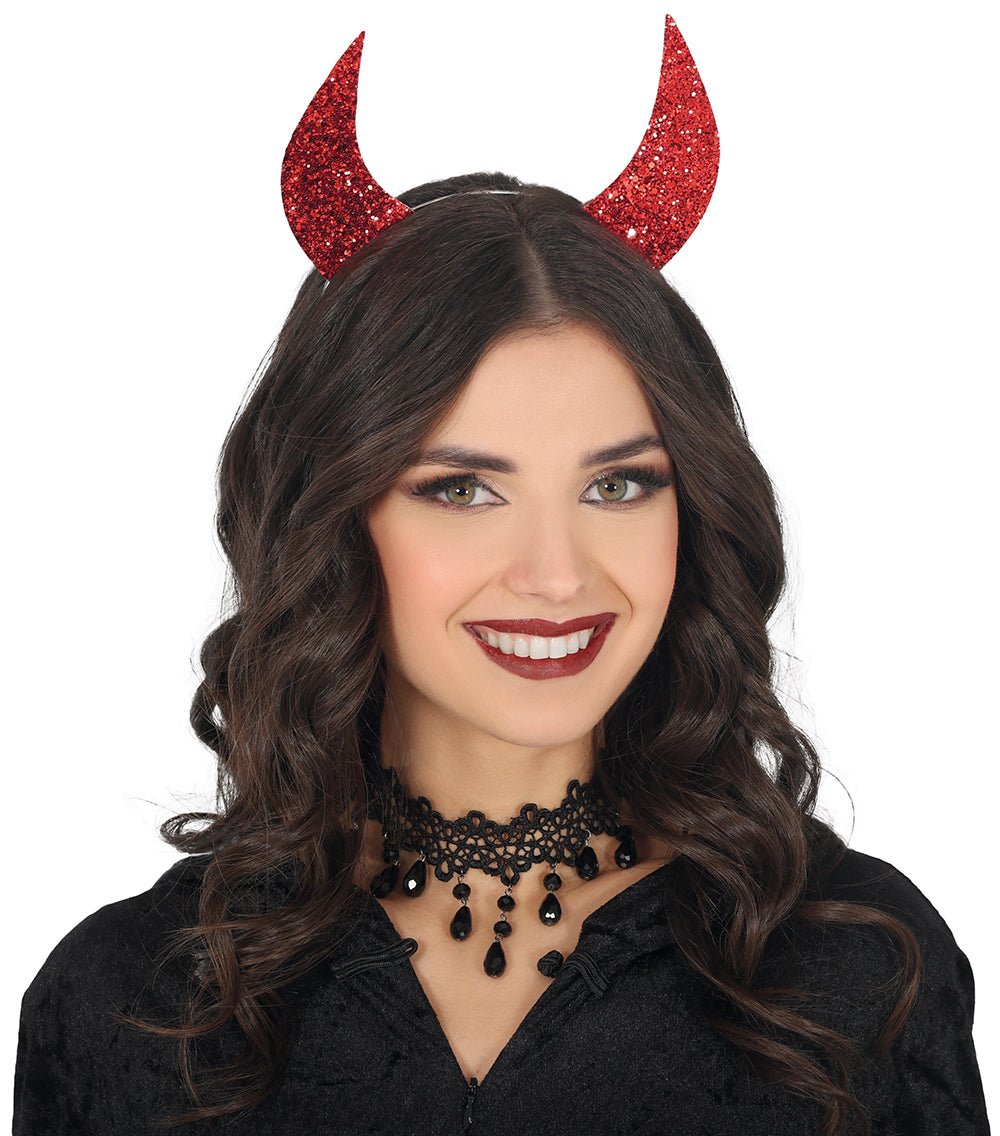 Opaska do włosów na Halloween Czerwone diabelskie uszy z brokatem