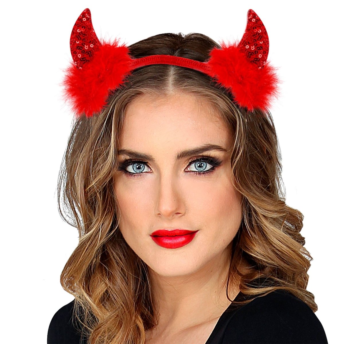 Opaska do włosów na Halloween Czerwony diabeł z brokatem