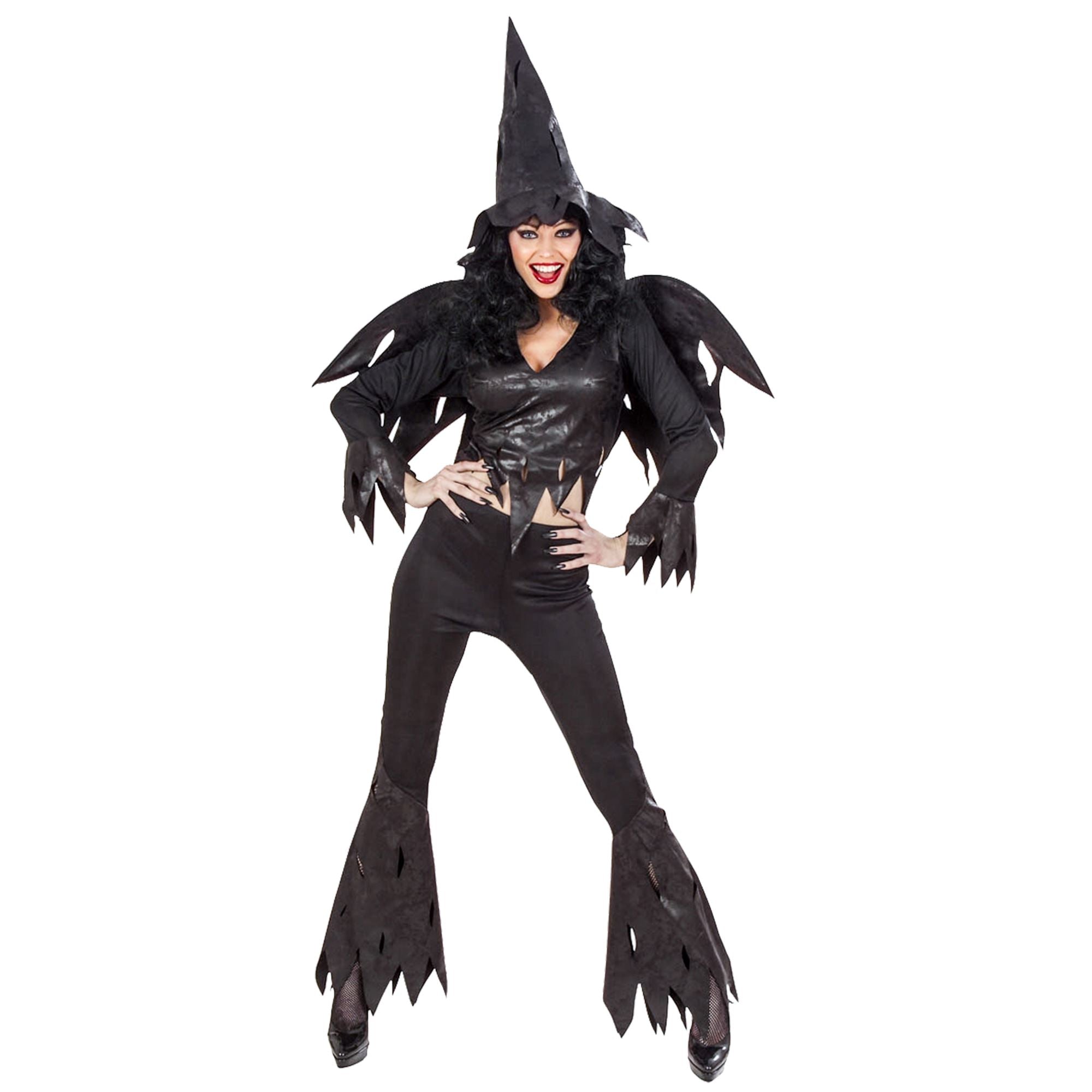 Kostium na Halloween Czarna damska czarownica 4-częściowy