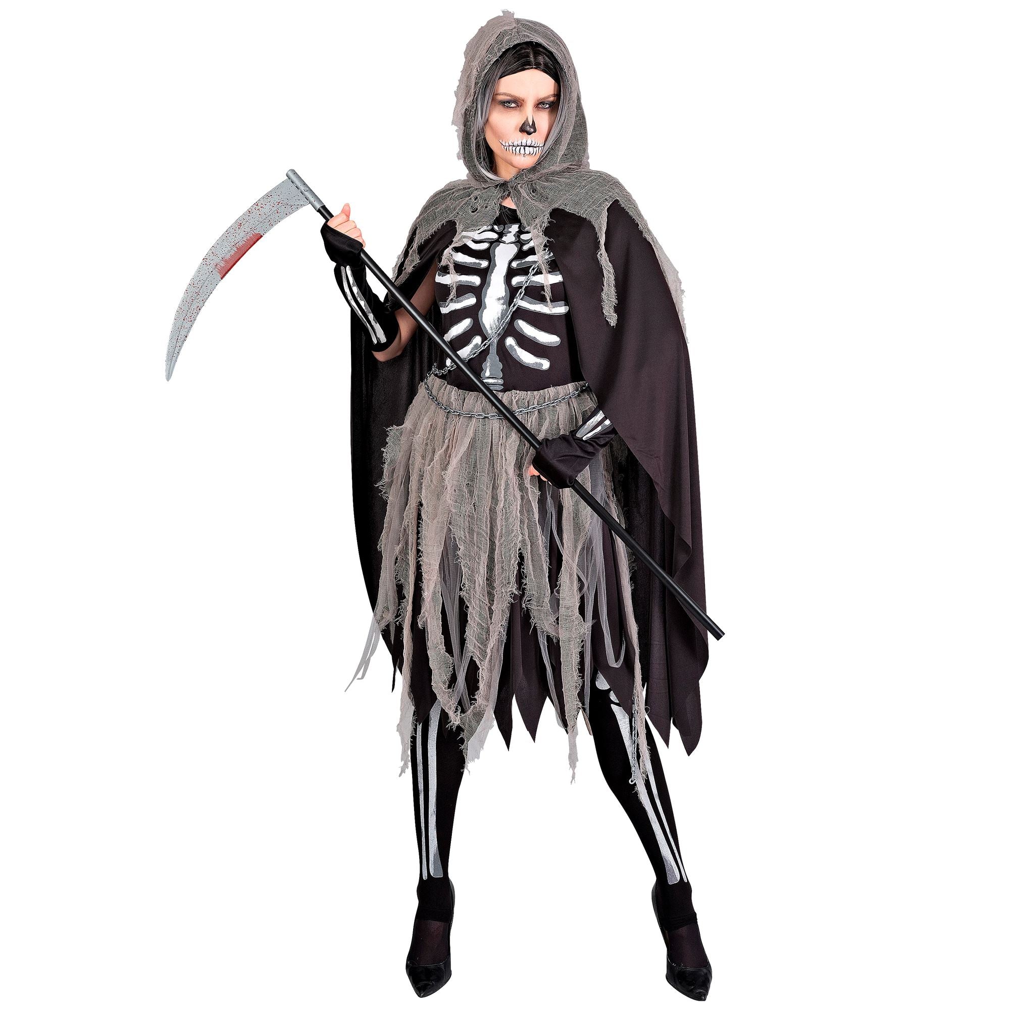 Zawartość: sukienka szkielet, rajstopy, rękawiczki, peleryna z kapturem, naszyjnik