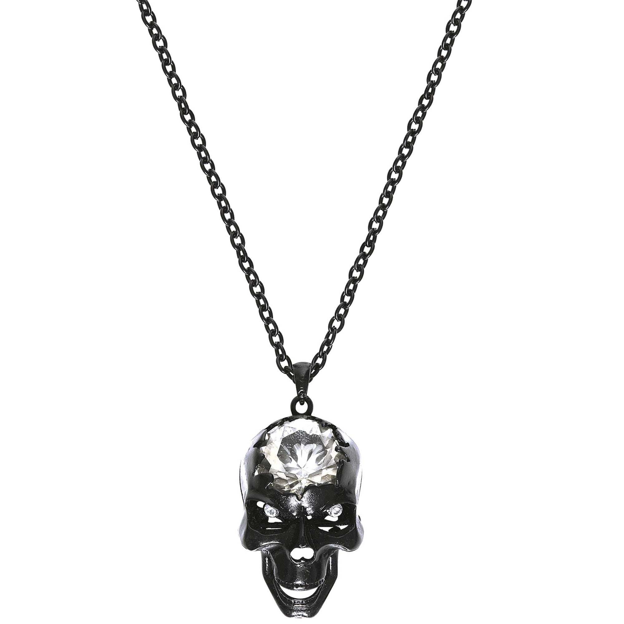 Halloweenowy naszyjnik czaszka z kamieniem szlachetnym