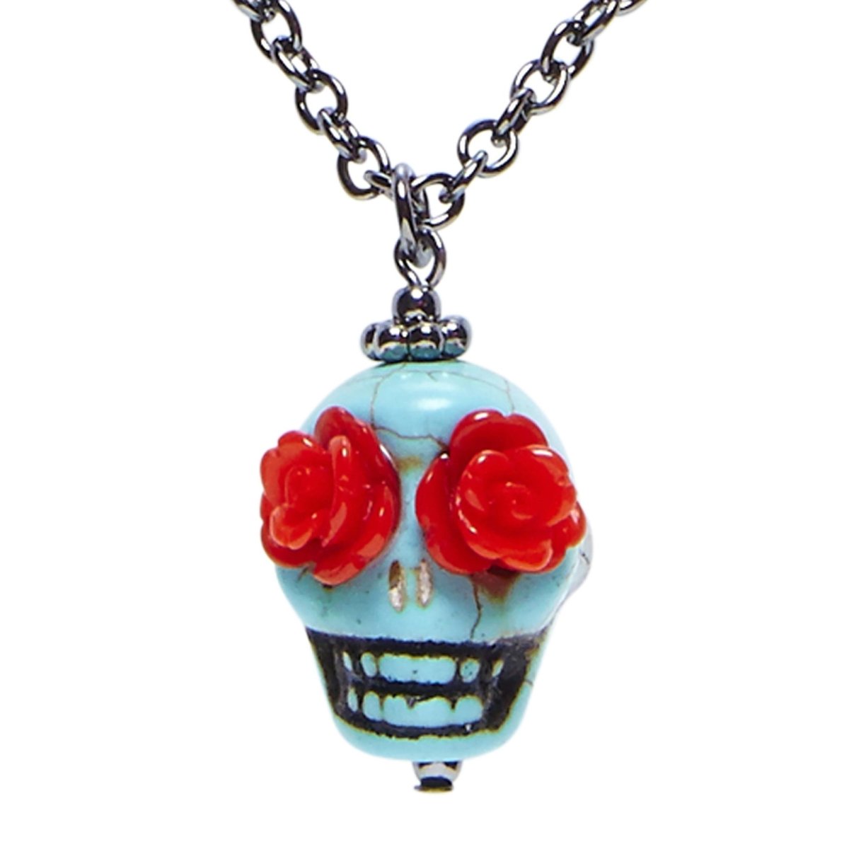 Uzupełnij swój halloweenowy look tym przyciągającym wzrok naszyjnikiem z kolorową czaszką. Idealny na imprezy kostiumowe, przebierane imprezy lub jako przerażający dodatek do kostiumu.