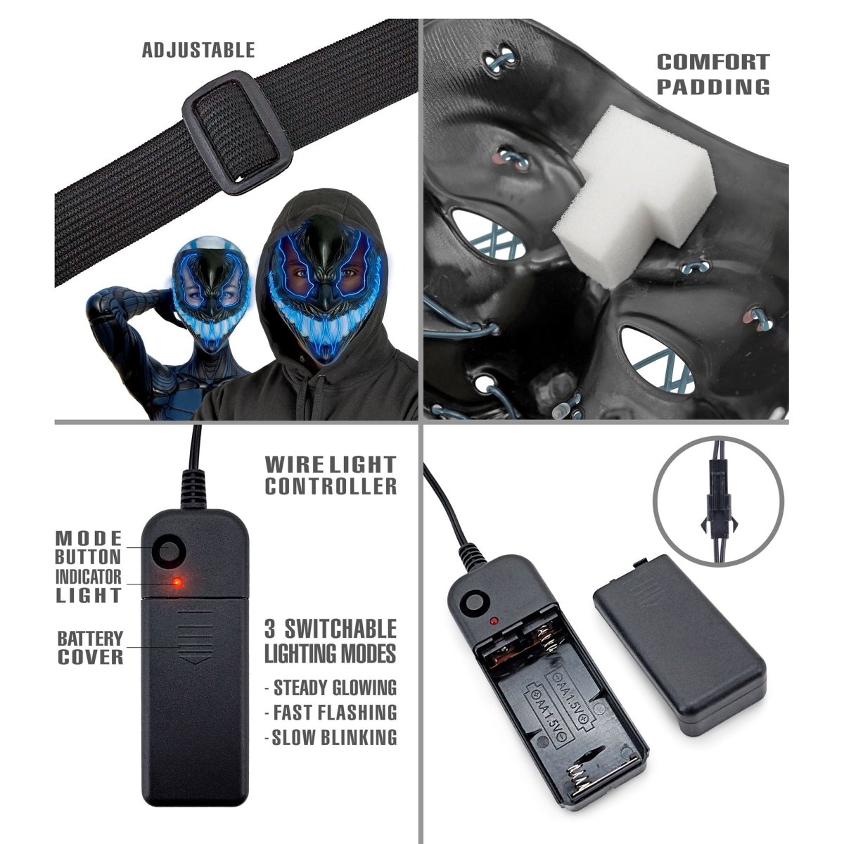 Maska na Halloween Niebieski potwór ze światłem