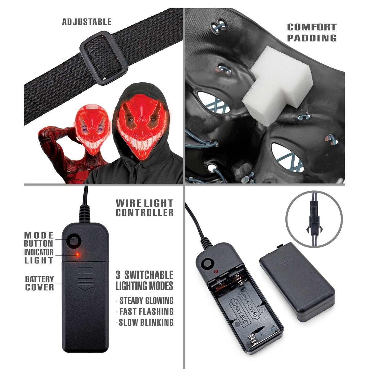 Spraw, aby Twój strój na Halloween był jeszcze bardziej przerażający dzięki tej czerwonej masce potwora. Wbudowany efekt świetlny nadaje Twojemu wyglądowi jeszcze bardziej przerażający wygląd, idealny po zmroku.