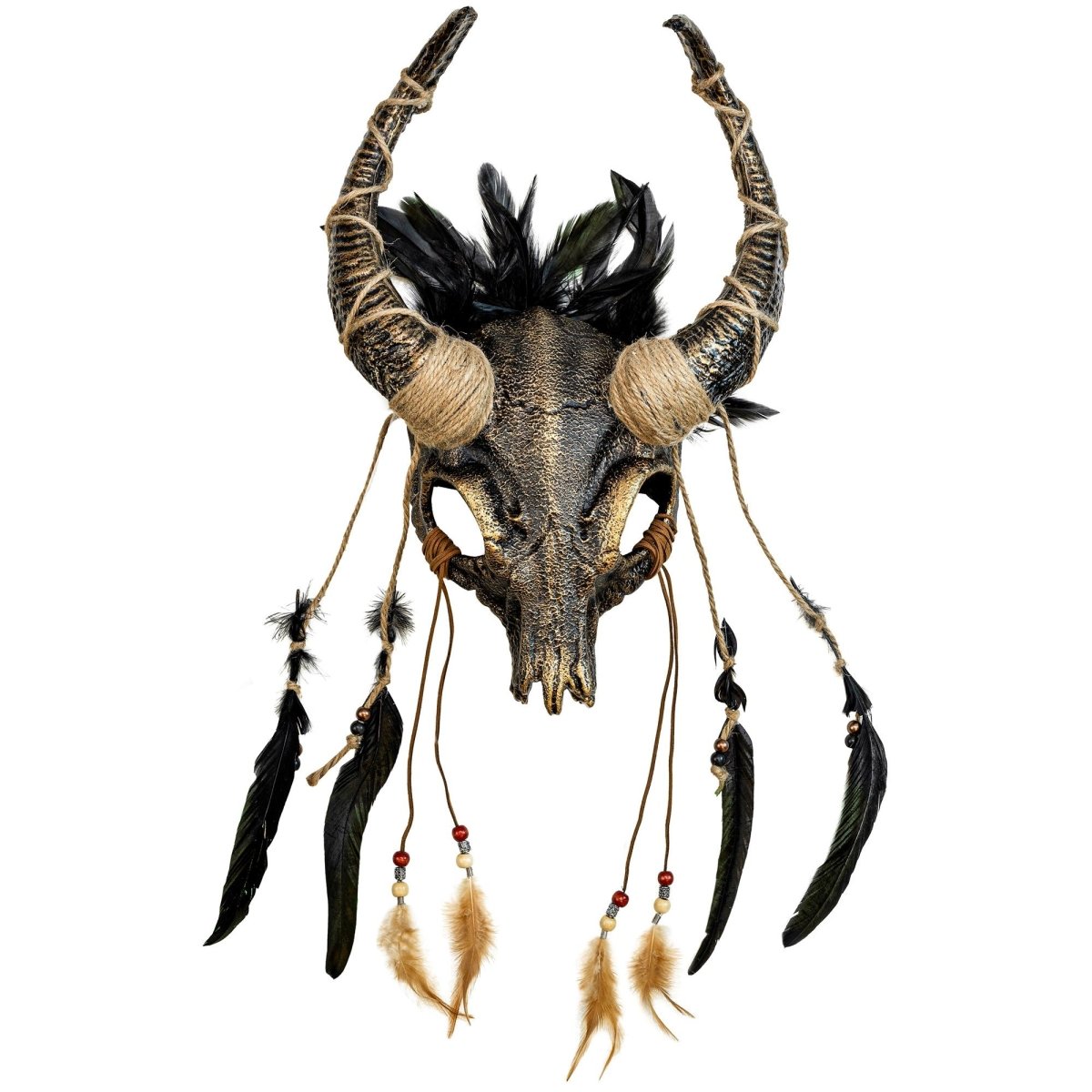 Uzupełnij swój strój na Halloween o tę straszną maskę czaszki z piórami. Idealna na imprezy tematyczne, bale przebierańców lub cukierek albo psikus. Maska łączy przerażający wygląd czaszki ze stylowymi piórami, zapewniając przyciągający wzrok efekt.
