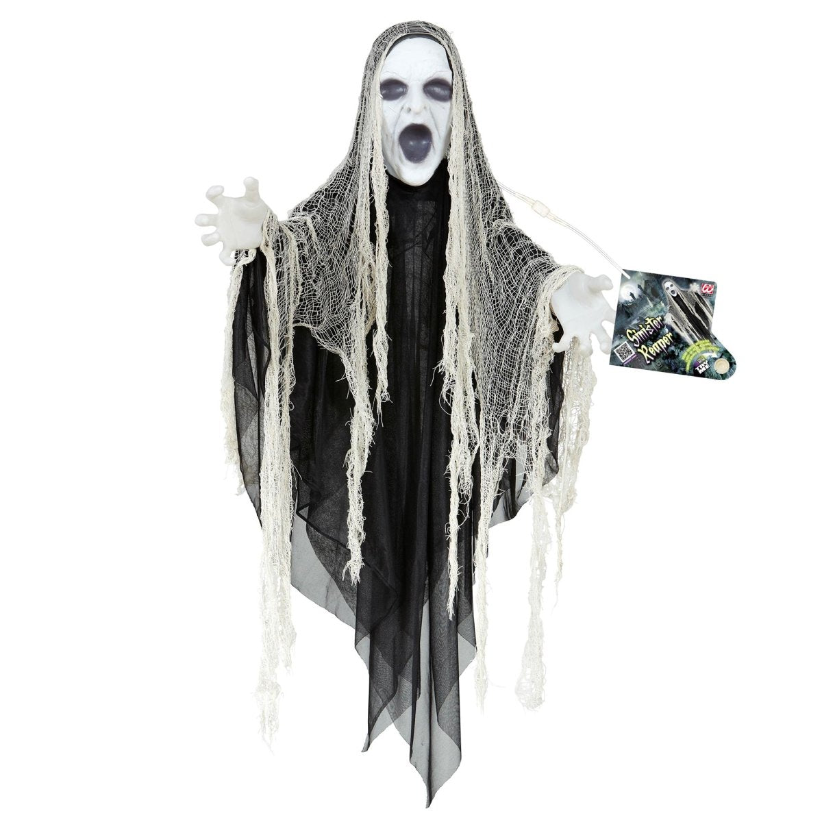 Spraw, aby Twoja impreza Halloween była przerażająca dzięki tej 1,53-metrowej lalce ducha/żniwiarza. Ta dekoracja jest wyposażona w światła i dźwięk, dzięki czemu jest wyjątkowo przerażająca i stanowi idealny dodatek do miejsca imprezy, podjazdu lub ciemnego zakątka Twojego domu.