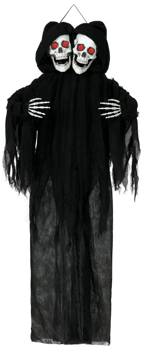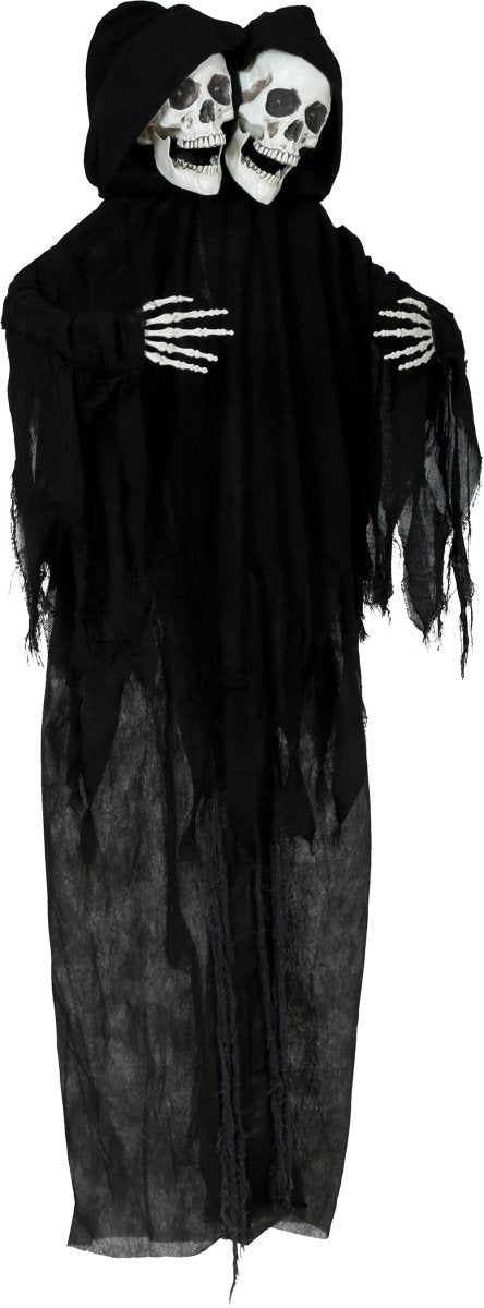 Halloweenowa lalka szkielet czarna dwie czaszki ze światłem i dźwiękiem 1,7 m