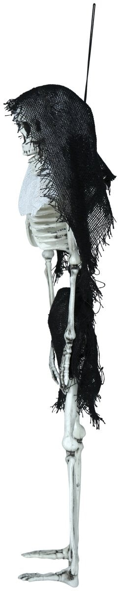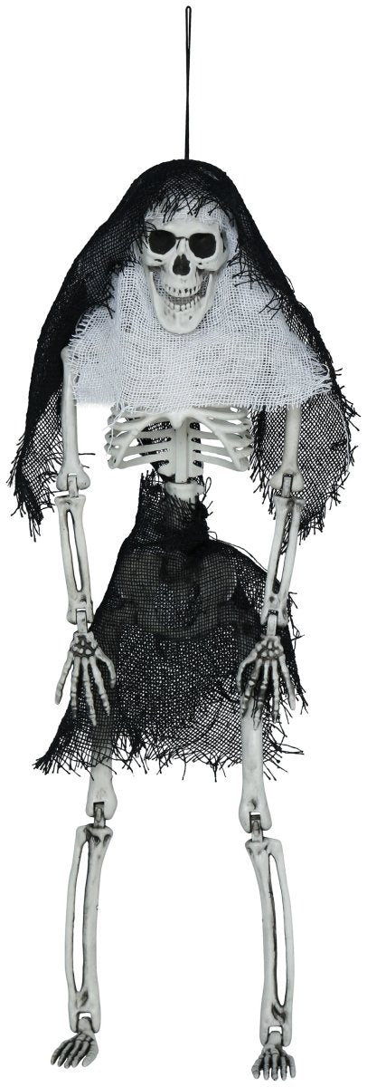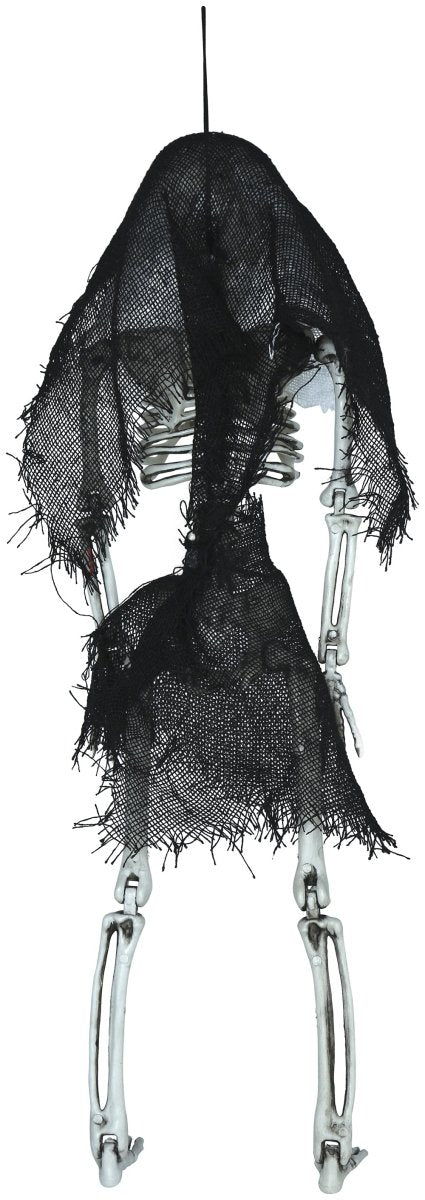 Nadaj swojej imprezie Halloween upiorny wygląd dzięki temu 45-centymetrowemu szkieletowi z kapturem. Przerażający projekt natychmiast przyciąga wzrok jako wisząca dekoracja.